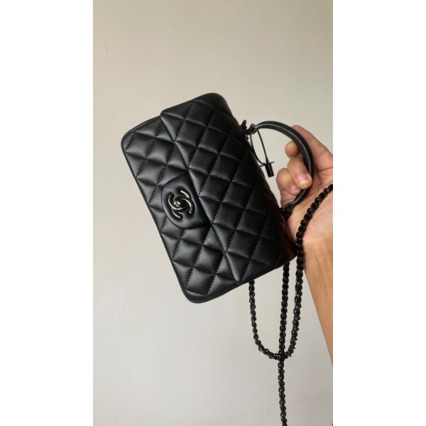 샤넬 24A 최신 인기 퓨어 블랙 CF mini Flap Handle bag 모델번호 AS2431 전국 독점 Bodin joyx 오리지널 스웨이드, 쏘 블랙, ZP블랙 버클까지 sizeL 20x9x13cm