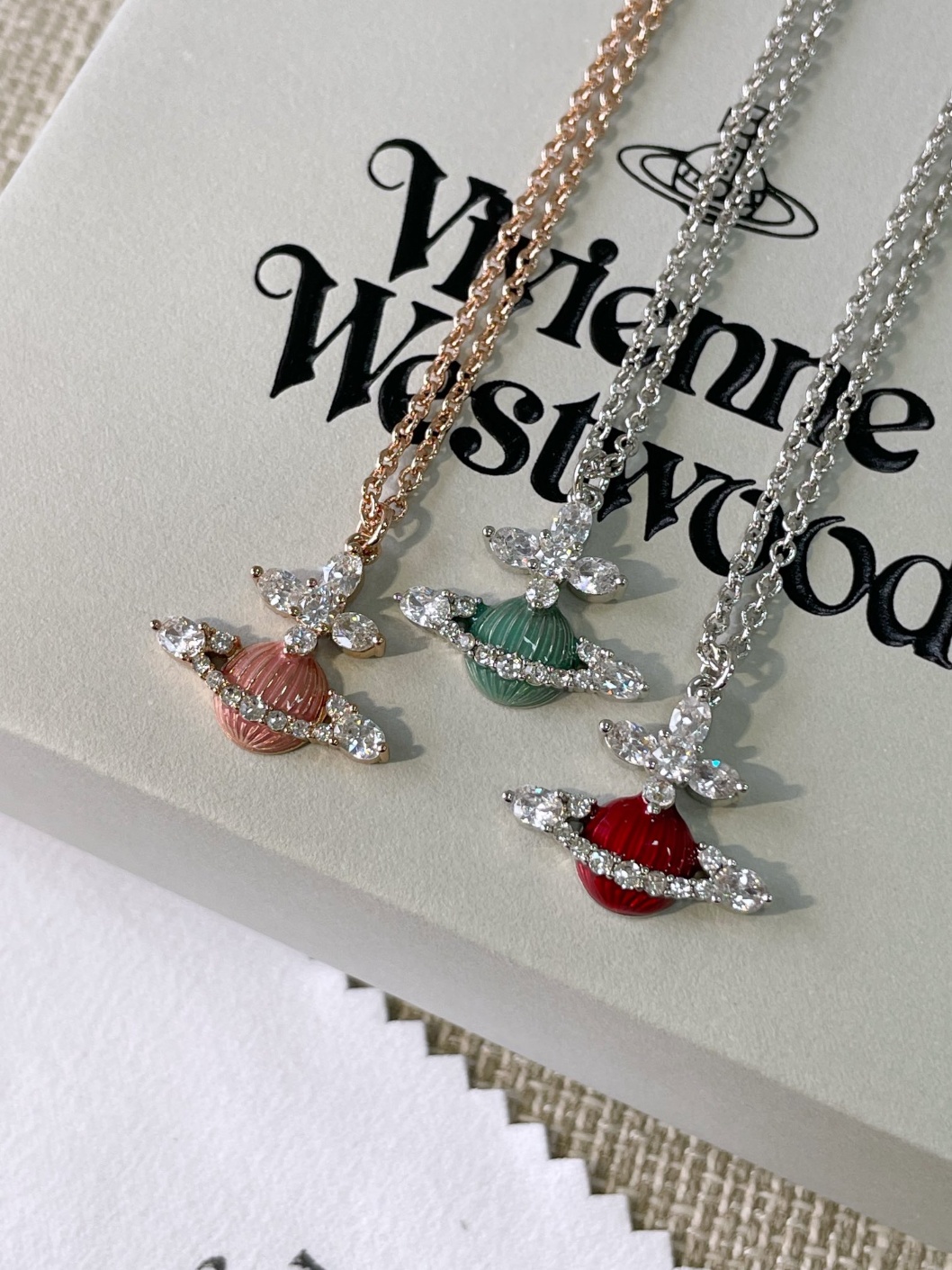 비비안웨스트우드 컬러 토성 목걸이 토성 위에 맞춤 스와로브스키 큐빅으로 입체적인 디자인에 중간중간 특별히 맞춤 제작된 반투과 법랑으로 투명하게 빛나는 젤리의 느낌이 절묘함 유일의 리얼모델로 ZP 구매 개발 ZP 일치 신주 소재 도금, 수입 스와로브스키 다이아몬드 사이즈 착용효과 참조