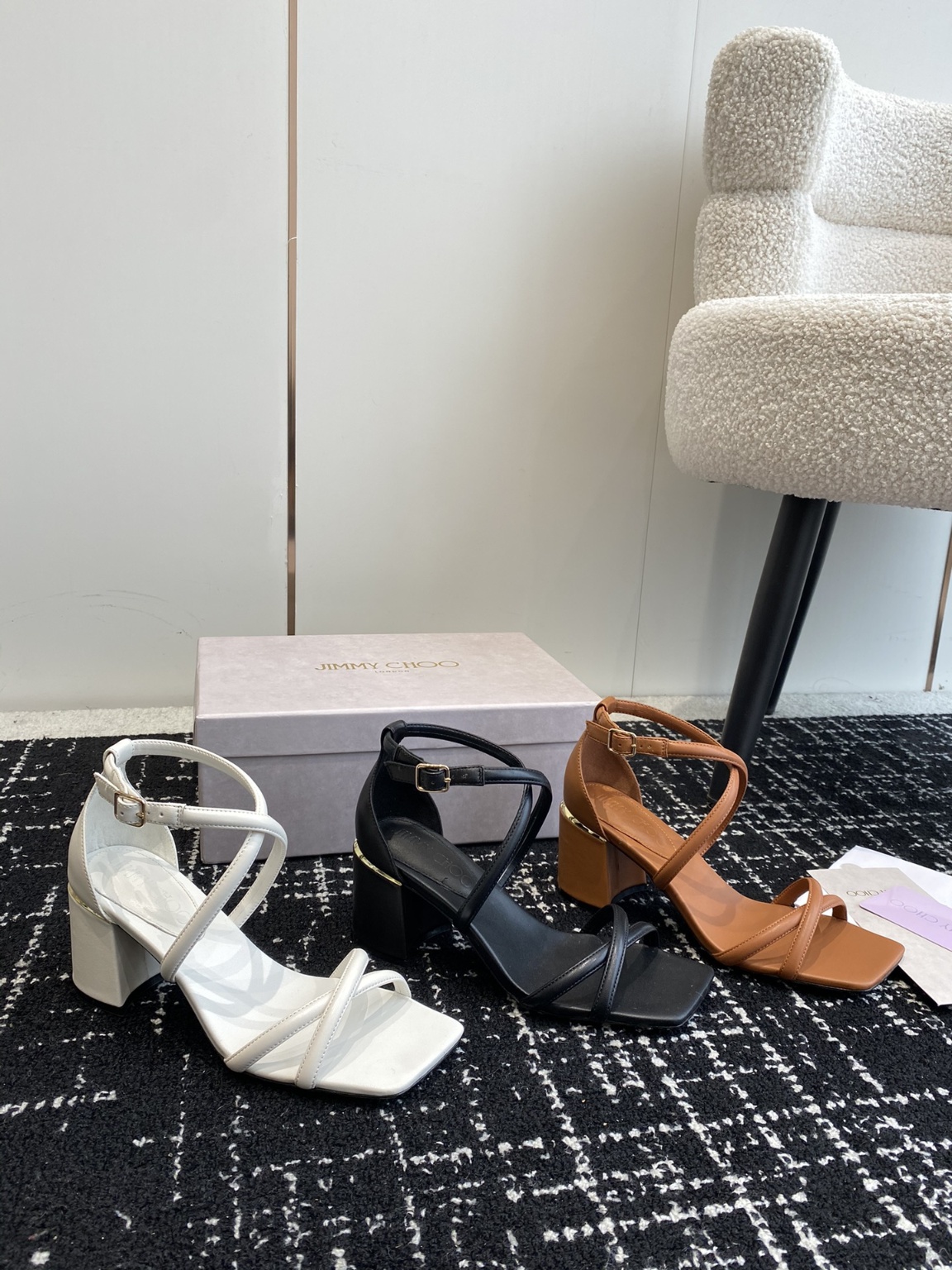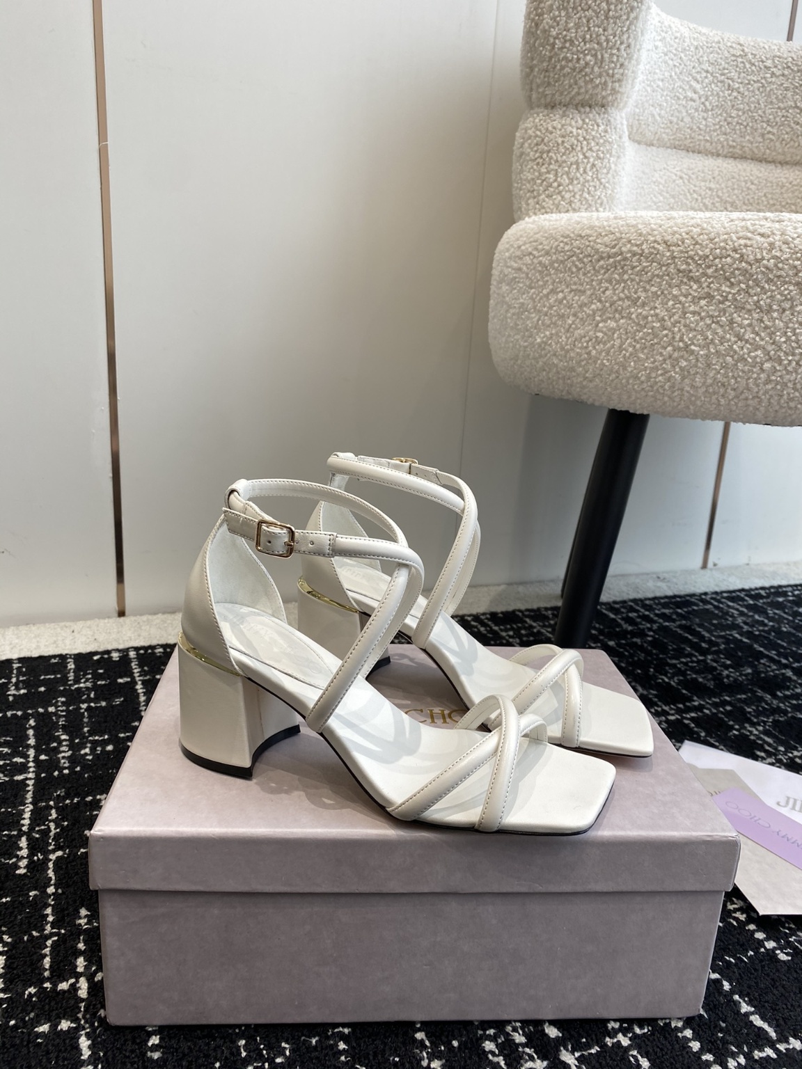 지미추 JC 24ss 봄여름 통굽 샌들 크기가 다른 큐빅 스틱은 빛이 굴절되어 블루잉으로 반짝이며 부드럽고 편안한 질감을 선사함 겉면: 오리지널 양가죽 깔창: 오리지널 양가죽 굽: 8cm 이태리 수입 리얼 가죽 대저