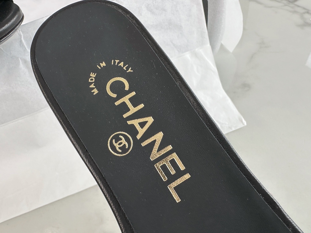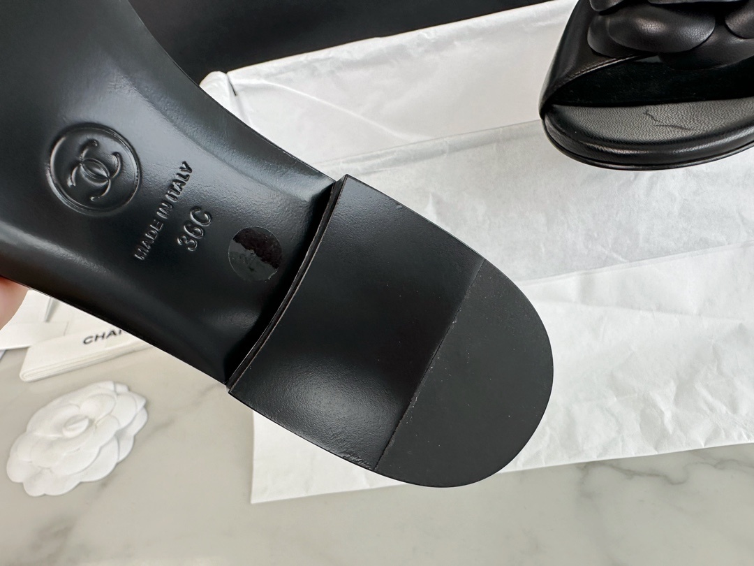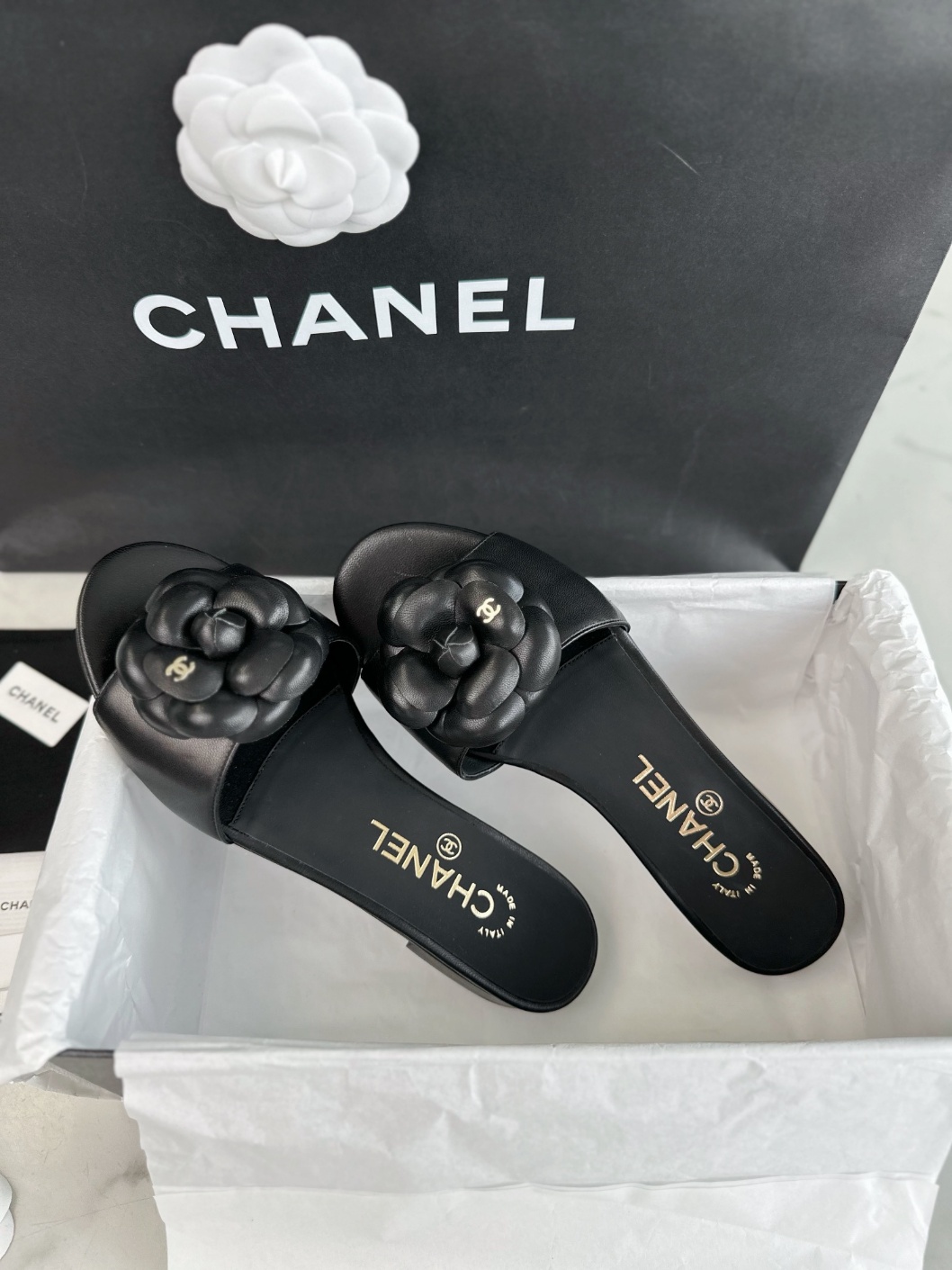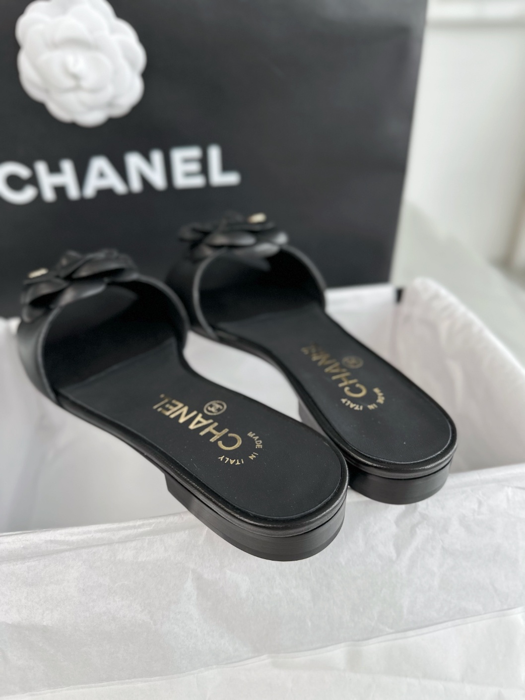 샤넬 24p 동백 일자 슬리퍼 흑양가죽+흑인쇄대창 뼛속 깊이 새겨진 이완감 고급스럽고 우아한 동백꽃 클래식은 유행을 타지 않아요
