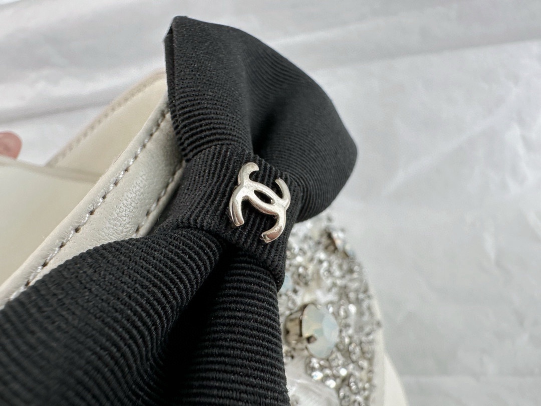샤넬 24S 큐빅 리본 프린세스 슬리퍼 디카스천 디지털 포지셔닝 후 각종 큐빅과 스팽글을 수작업으로 꿰매고 새틴으로 만든 리본 물염베이지 양가죽 면+양가죽 패치워크, 전기 도금 굽 이태리 리얼 가죽 인쇄 밑창, 한눈에 심쿵하는 헤비메탈 블링블링의 반짝이는 자이언트 래프팅 희고 어려 보여 더 사랑스러움, 귀티 물씬