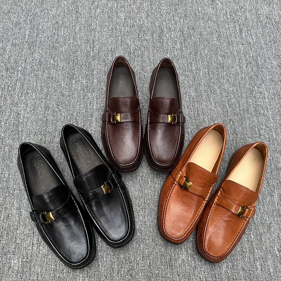 페라가모 스페셜 중공업 수제화 로퍼 완제품 인기상품, 표준 로퍼 스타일 신발의 안쪽과 바깥쪽은 현재 매우 유행하는 수입 말가죽 가죽은 부드럽고 섬세하며 광택이 있으며 정교한 수작업 스티치, 천연 가죽 앞뒷바닥에 고무패치 부착 신발 전체를 워싱 처리하여 순수한 수공예의 극치를 보여줌 발은 부드럽고 통풍이 잘됨