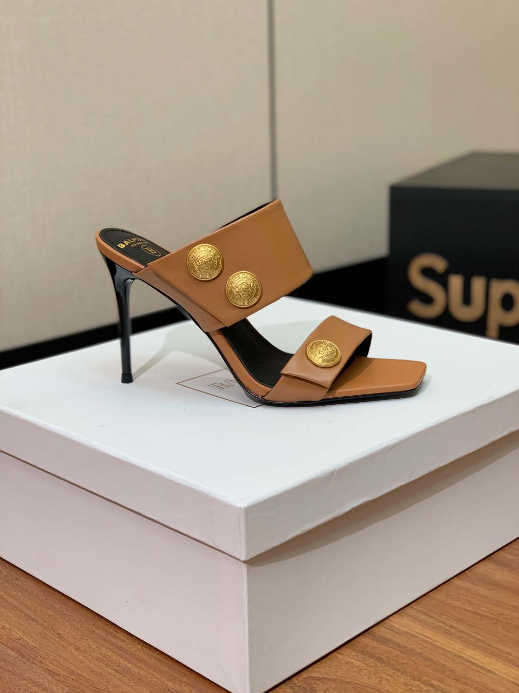 발망 워킹용 스틸레토 힐 슬리퍼 중공업 제조, 수개월에 걸친 모든 몰드 제조 모든 재료, 재질, 제작 공정이 원본과 일치하는지 확인 소재: 신발 표면 수입 송아지 가죽 + 금형 오픈 메탈 버클 소가죽 깔창 이태리 수입 리얼 가죽 플랫폼 굽 9.5cm