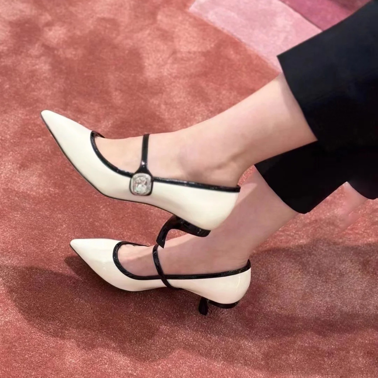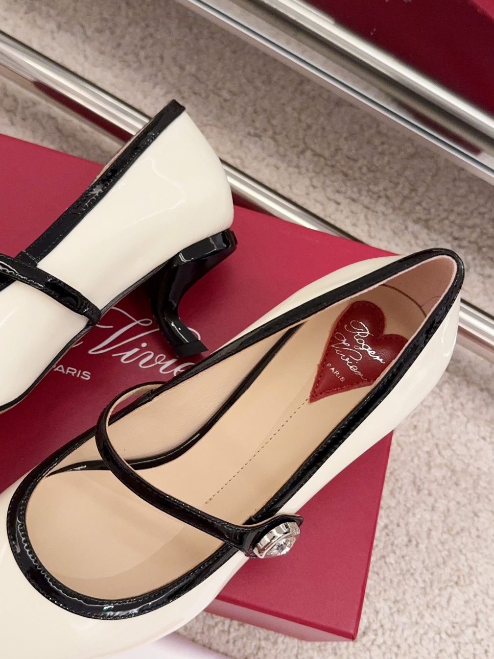 로저비비에 초가을 버글 에나멜 메리제인 힐 수입 원형 소가죽+속굽 무스탕 맞춤형 오픈 로고 큐빅 버클 이태리 리얼 가죽 플랫폼 굽 5cm