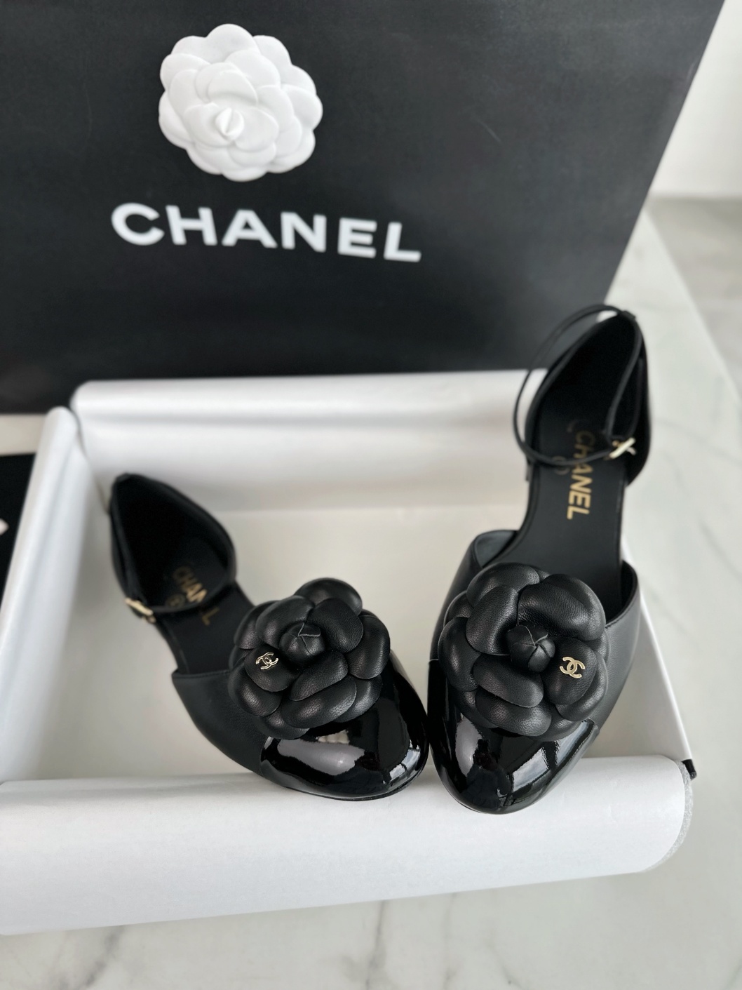 샤넬 24P 카멜리아 블랙 플랫 메리제인 블랙 펄 양가죽에 블랙 오리지널 가죽 대창 입체 동백꽃 포인트 발 모양 보정 가죽은 부드러우나 내장의 곡선이 잘 펴지지 않고 잘 조여져 있어 정말 완벽함