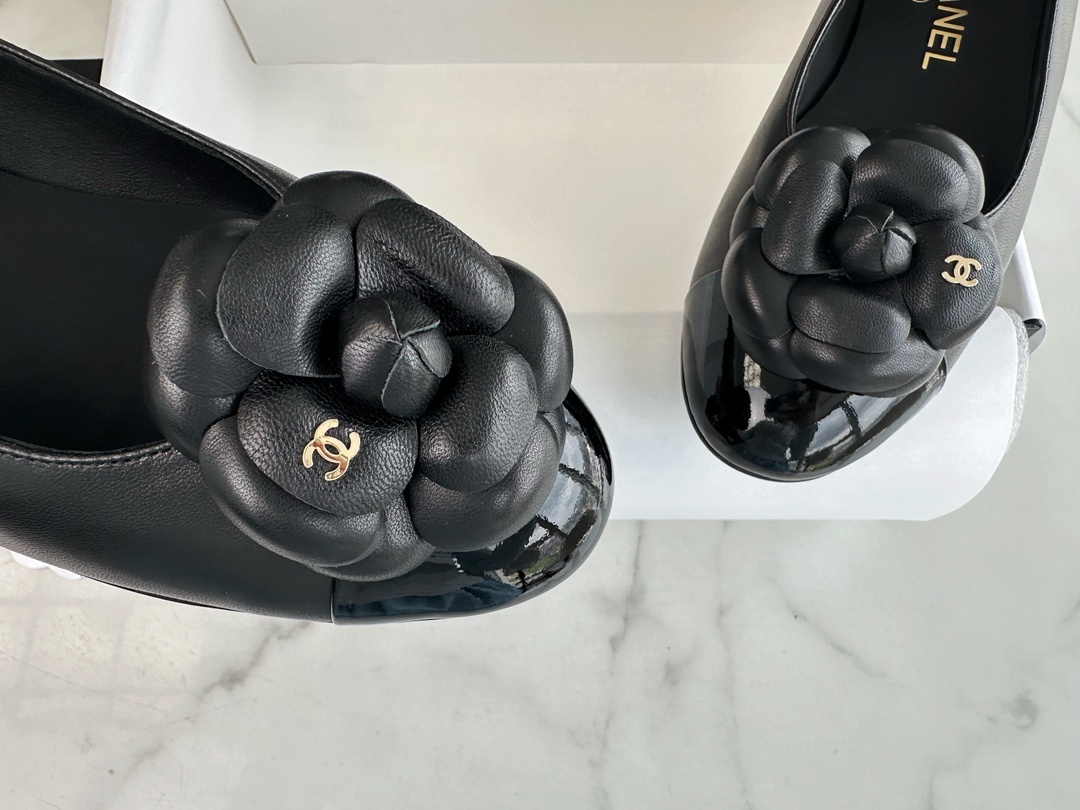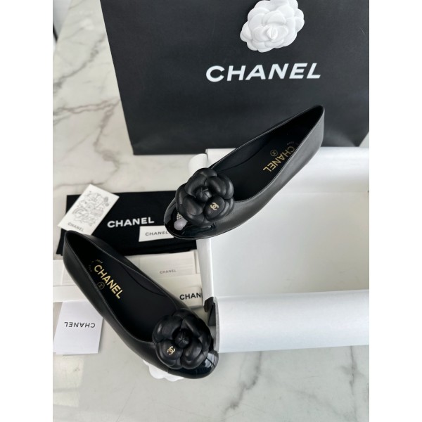 샤넬 24P 카멜리아 블랙 발레슈즈 양가죽+동백꽃+리얼가죽 통굽 디자인으로 발랄함 아우라와 아방가르드 하나가 된 듯 날렵함을 더해주는 무시하기 힘든 존재