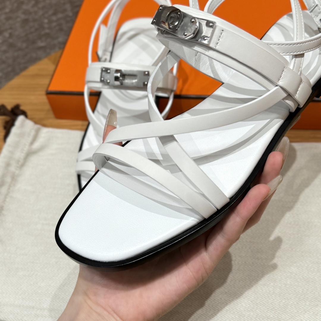 스타일: 106 준 켈리 샌들 색상: 01/blanc/퓨어화이트 구두재료: calfskin/송아지 가죽 바닥재: 진피대창/Dermal outsole 하드웨어: 실버 버클 저희 제품은 모두 핸드메이드