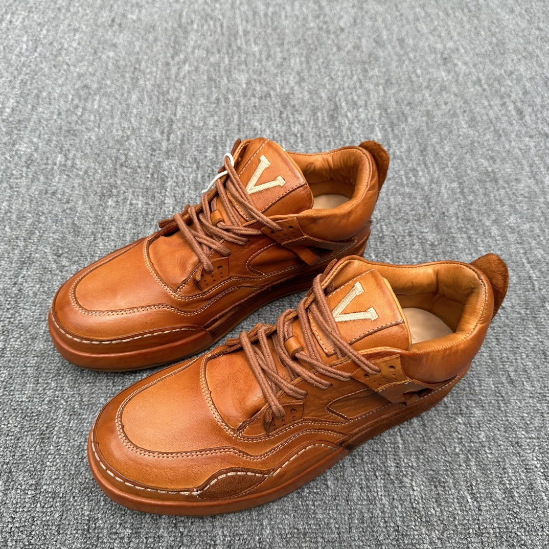 LV 신상 남성 스페셜 헤비 수제화 신발 안과 밖은 현재 매우 유행하는 수입 말가죽 가죽은 부드럽고 섬세하며 광택이 나며, 정교한 수작업 스티치 중창은 여러 겹의 가죽 밀착 고무 밑창, 바닥은 모노그램 꽃 신발 통은 워싱 처리하여 최고의 수공예품 레터링 자수 로고 뒤꿈치는 가죽으로 감싸고 상단은 부드럽고 통기성이 좋음