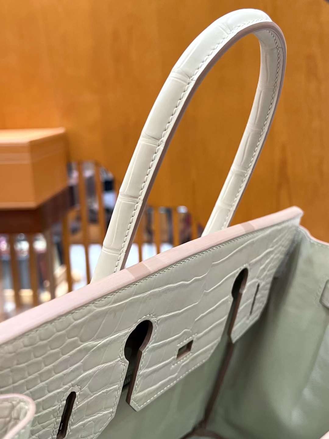 버킨 30cm 빙하 화이트 베이악어 V 프로서스 실버클립 수입 원단 프리미엄 손바느질