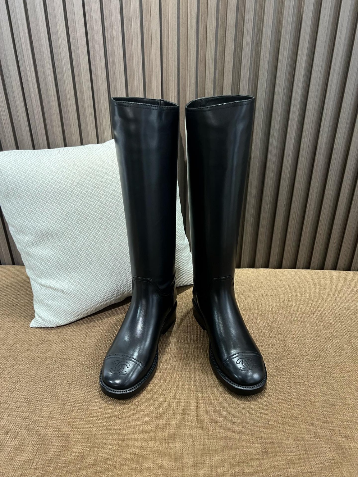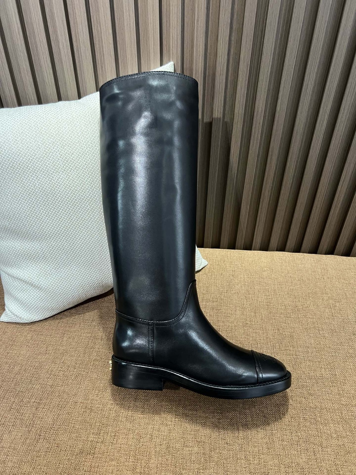 샤넬 오리지널 라이더 부츠 베이직한 핏에 작은 굽으로 다리가 돋보이며 어디에나 잘 어울리며 절제된 스타일 뒤꿈치의 로고가 아이코닉하게 돋보임 겉감은 수입 송아지 가죽으로 가죽 소재감이 뛰어남 이태리 수입 A급 가죽 통굽