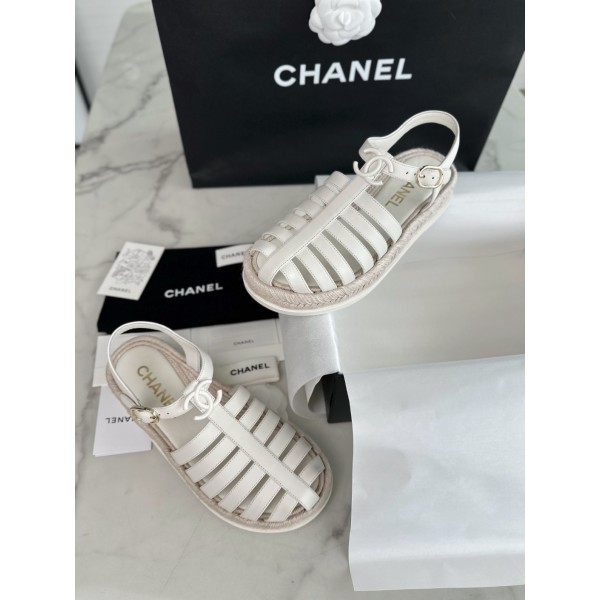 샤넬 24C 화이트 로마 벙거지 샌들 정말 모든 디테일이 우수함 베이지색 양가죽에 끈 고무 밑창 공예와 질감은 말할 것도 없고, 소녀의 마음이 폭발함 정말 너무 멋지지 마세요, 눈을 뗄 수 없음