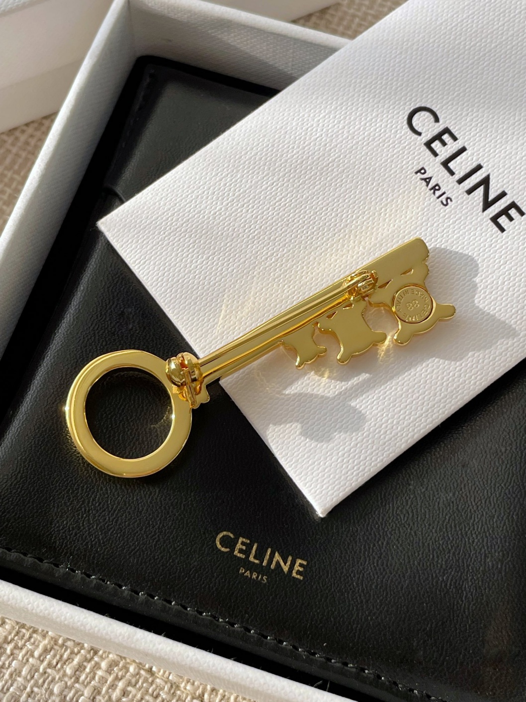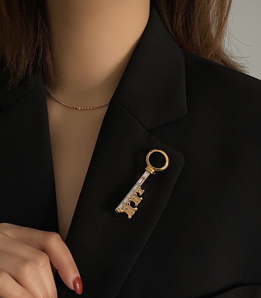 셀린느 골드 열쇠 브로치 스타일리시하고 심플하면서도 창의적인 디자인 유일한 진짜 ZP모델 구매 개발 ZP 일치 신주 소재, 수입 스와로브스키 크리스털 큐빅 사이즈 착용효과 참조
