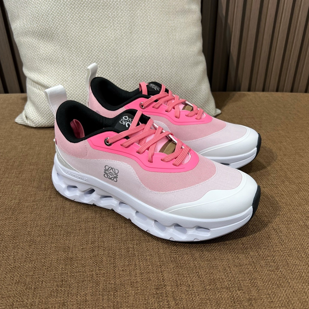 로에베 X 온 런닝 콜라보 겉면은 오리지널 폴리 저지 원단을 사용 고기능성 가벼운 버블면 미들창! 인솔에는 LOEWE X on 로고 옆에는 LOEWE Anagram 로고가 새겨져 있음 가볍고 높은 스니커즈로 편안하고 착화감이 좋음