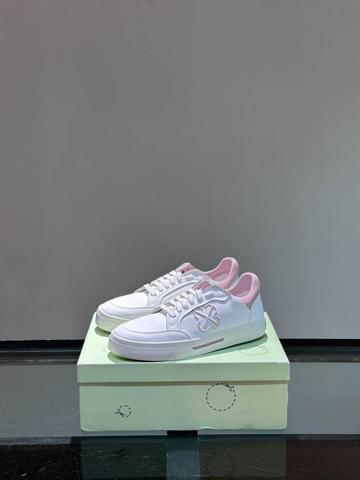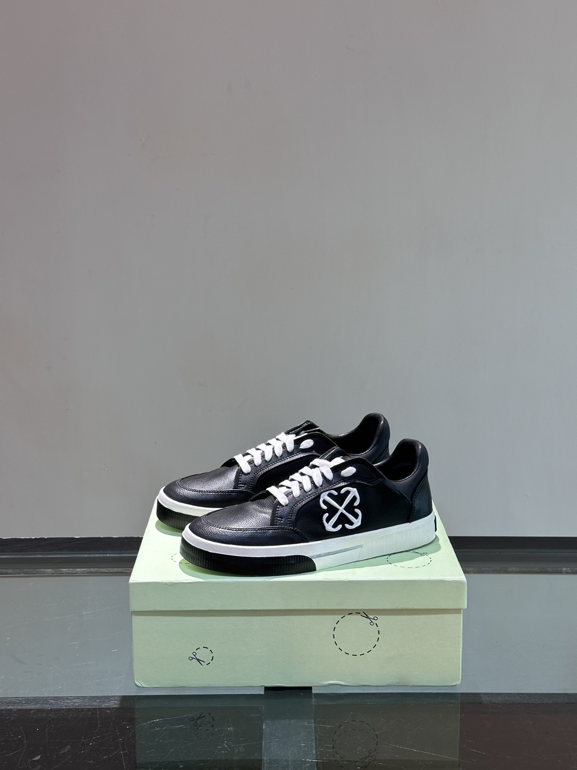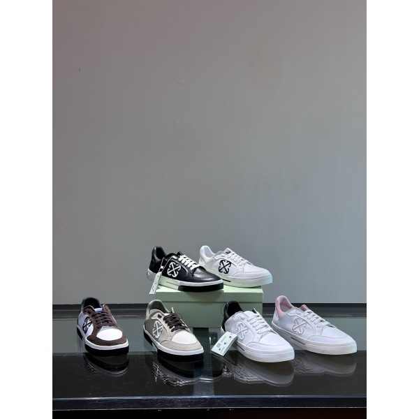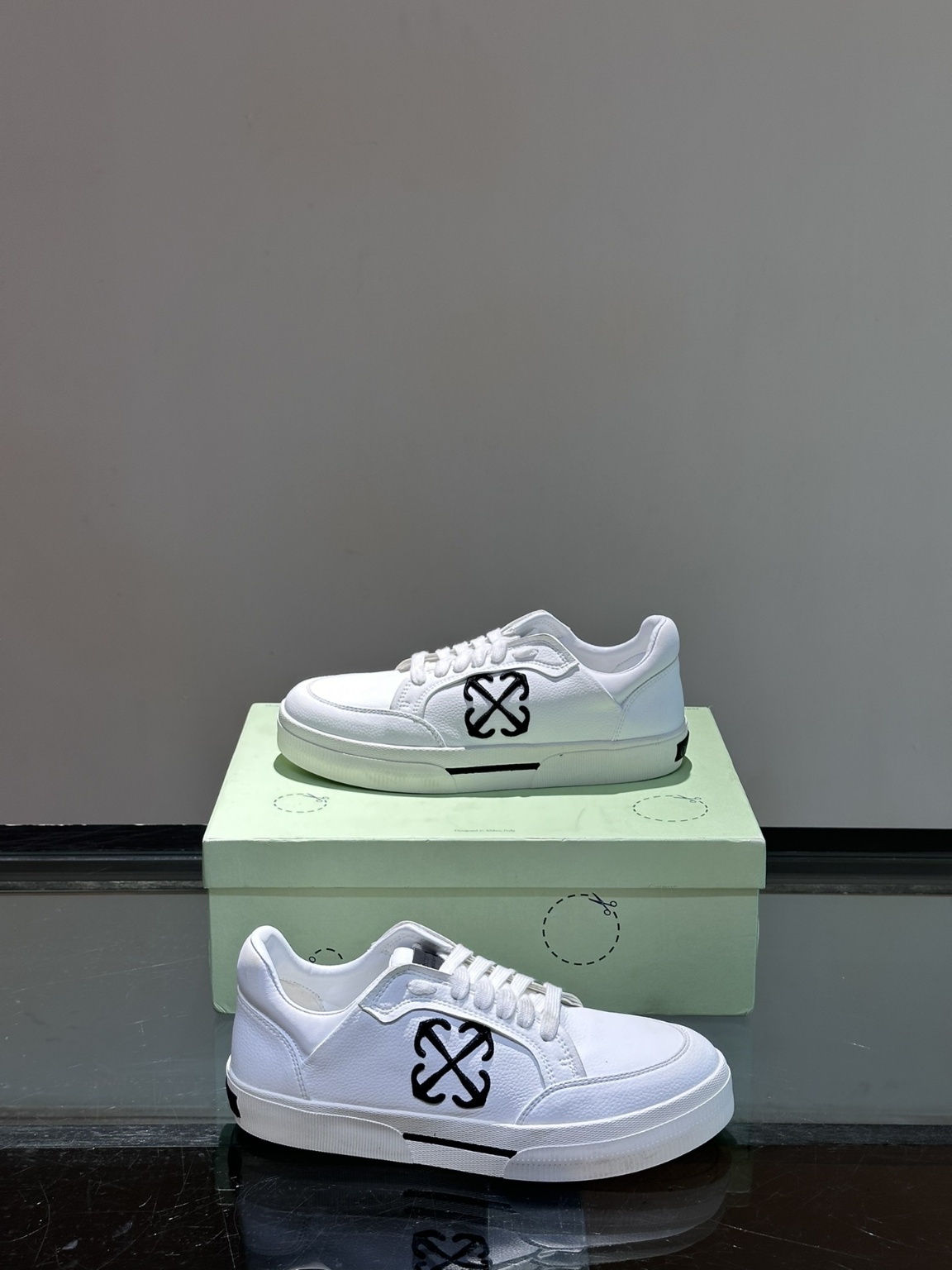 Off White 커플용 로우 스트랩 스니커즈 소가죽 패치 캔버스, 갑피에 로고, Off White 로고 톤온톤 라벨 디테일, 착색 고무창 편안하고 통기성이 있으며 오래 신어도 발이 지치지 않음
