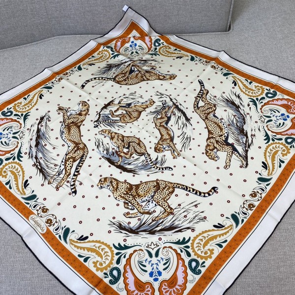 에르메스 치타 실크 스카프 창작 연원: 게파드 반다나의 디자인 겹겹이 쌓인 원 속에서 치타가 달리는 자태의 아름다움을 보여줌 팔다리를 최대한 가까이 대고 몸이 완전히 이완되고 펴질 때까지 힘을 모아 마치 하늘을 나는 것처럼 거의 완벽한 선을 형성함 스피드라는 단어의 가장 좋은 해석은 이것이지만 치타의 우아한 질주, 최고의 아름다움 타고난 위엄을 반영하기에는 너무 평평함 야생 세계의 수호자이자 재능 있는 고양이과 동물 화가 로베르를 표현한 네모난 스카프 달레(Robert Dallet)의 특선 그림 소재 : 100% 실크 size : 90×90cm