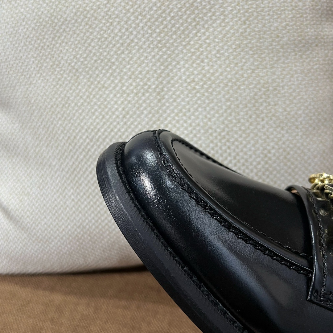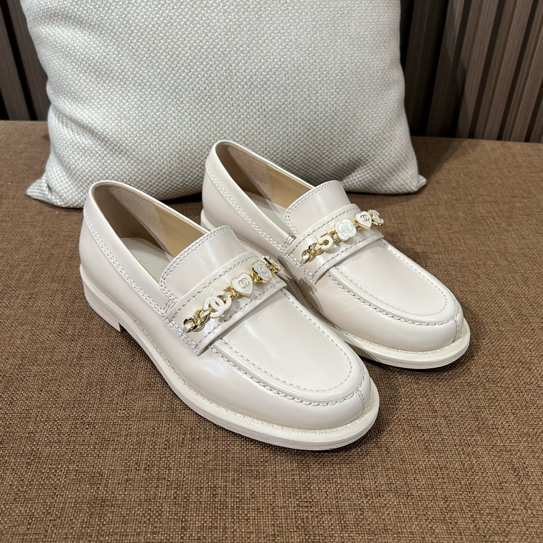Chanel 24A 새로운 세련된 공방 컬렉션 드롭 체인 로퍼 신발 표면은 고급 헤드 오일 왁스 송아지 가죽으로 결이 곱고 광택감이 촉촉함 세련된 동백 금속장식이 유니크한 광채를 선사함 양가죽의 안감이 부드럽고 포근함 이태리 수입 A급 리얼 가죽 소재 라운드 쉐입으로 우아한 분위기를 연출할 수 있음