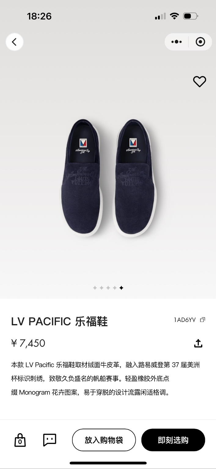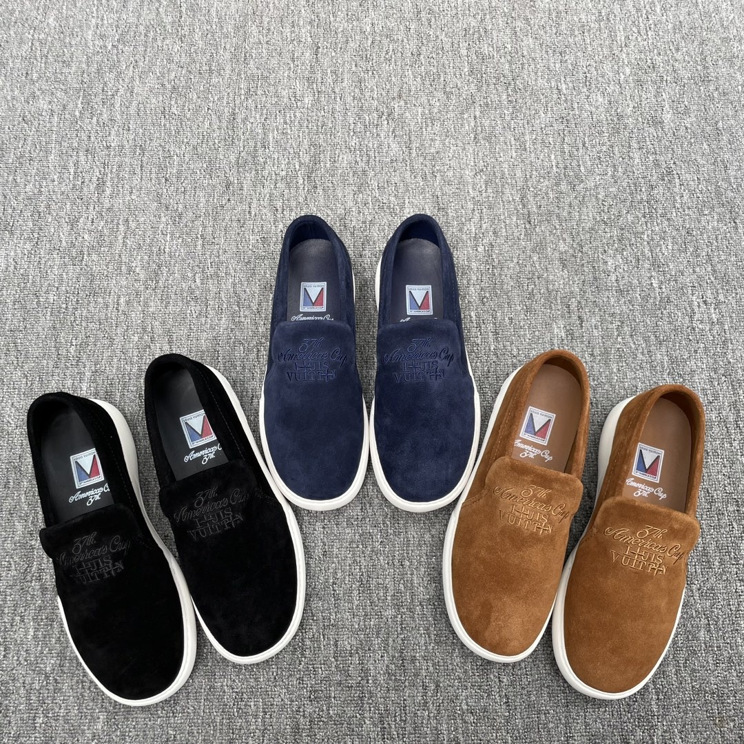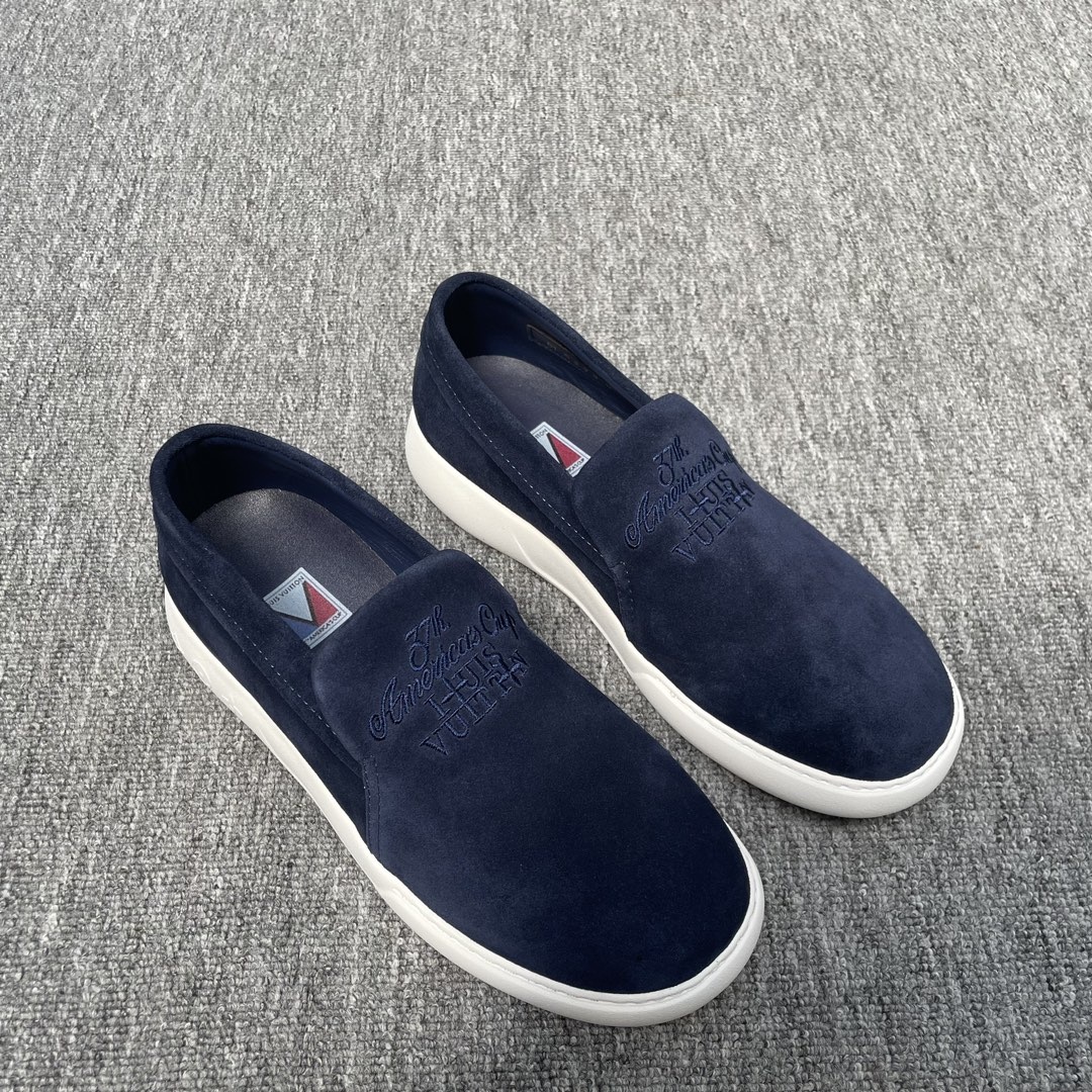LV Pacific 로퍼 스웨이드 소가죽에 루이비통 제37회 아메리카컵 로고 자수 가벼운 러버 아웃솔에 모노그램 플로럴 패턴이 포인트 신고 벗기 쉬운 디자인으로 캐주얼한 품격을 드러냄 스웨이드 소가죽 고무창