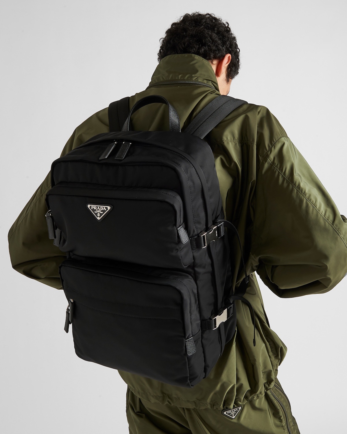 프라다 리나일론 사피아노 백팩 모델번호 2VZ101 수입 나일론 원단을 사용하여 과학적이고 기술적인 외관 지퍼식 메인칸막이와 버클은 수납에 편리하며 2칸, 3개의 외부지퍼포켓, 메쉬패브릭으로 뒷면이 편하고 내부지퍼포켓, 와펜, 가죽 스트랩과 버클 옆면 여밈과 벨트, 실용성이 매우 뛰어나고 캐리어에 맞먹는 칸막이가 많고 상체효과도 멋짐 사이즈: 길이 25.5x높이 21.5x 바닥 45cm