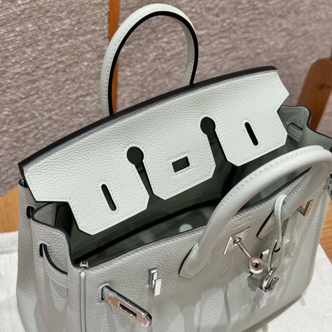 Style:Birkin Colour:0W/Girs neve Size:25*20*13cm Leather:togo From France Hardware:silver 플래티넘 25, 아이스 크리스탈 그레이 프랑스 수입 오리지널 소가죽, 실버 버클 고급 풀 핸드메이드 맞춤 제작 핸드메이드 못 박기, 핸드메이드 철물, 18k 철물 주문 실사