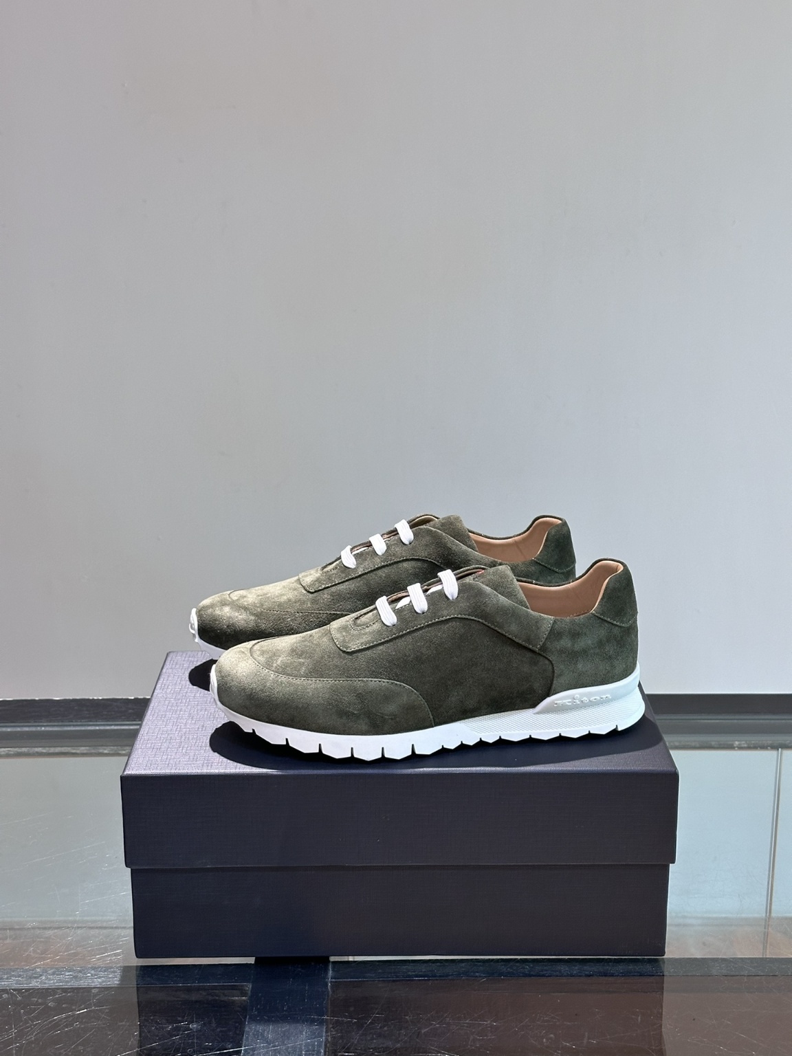 키톤 프리미엄 남성 캐주얼 스니커즈 스웨이드 소가죽 소재, 부드럽고 섬세한 가죽 키톤 마이크로 로고 화이트 라이트 오리지널 플랫폼으로 편안한 발끝을 제공함