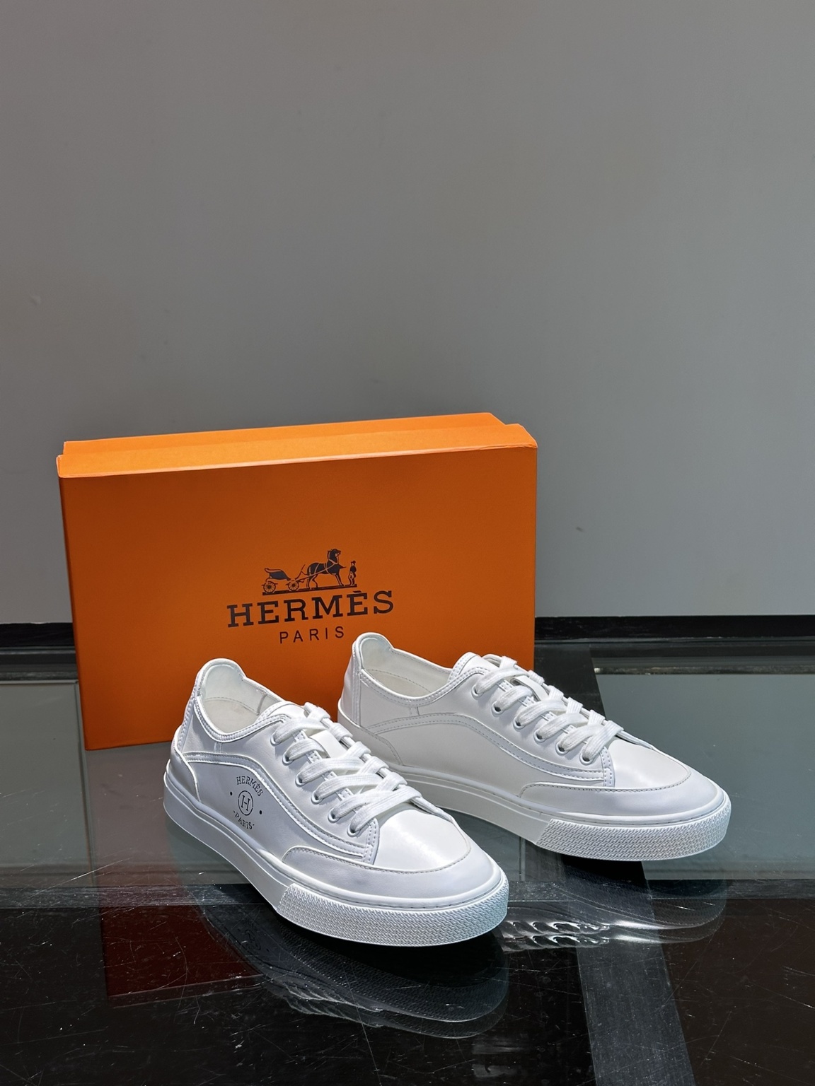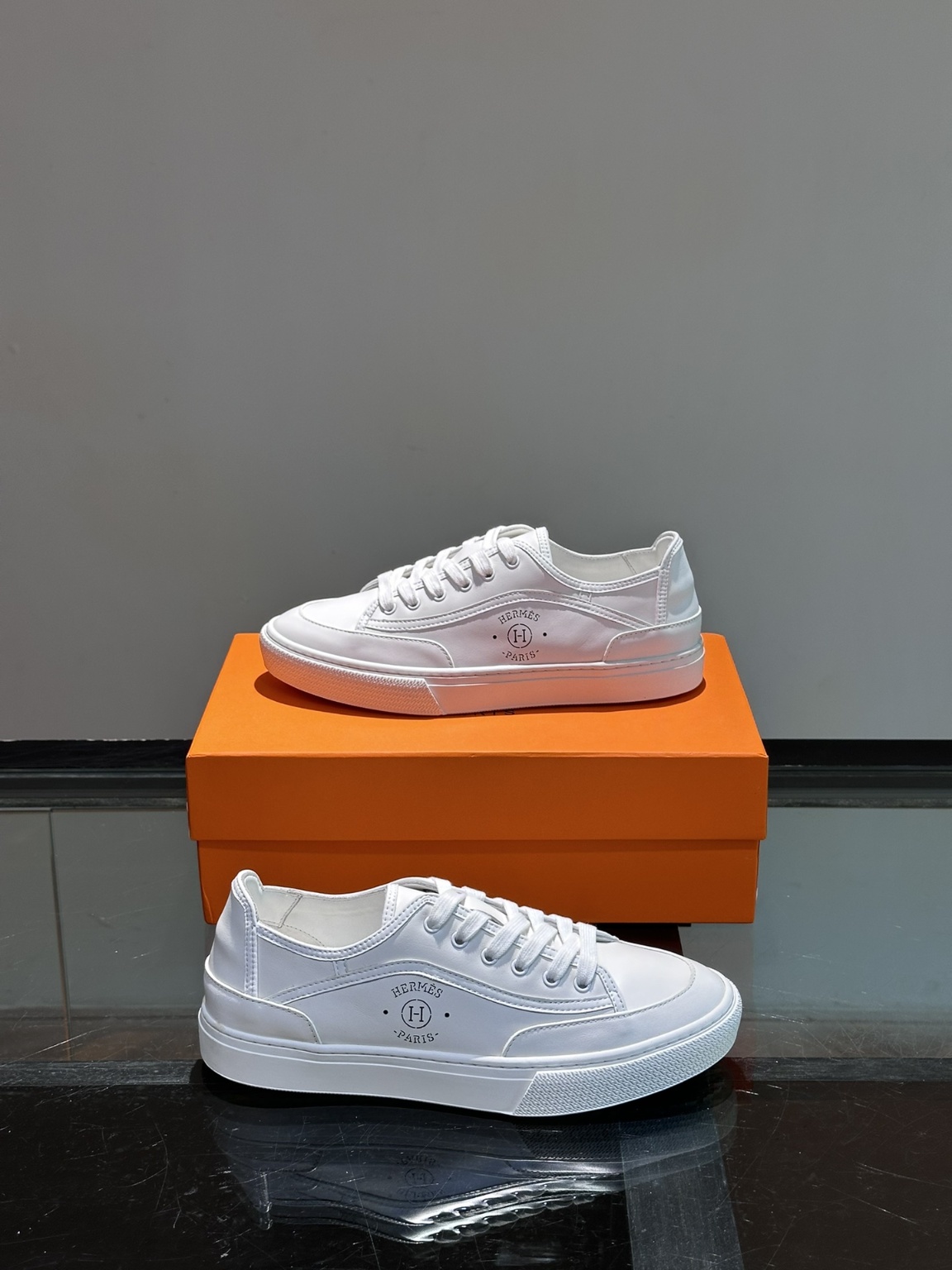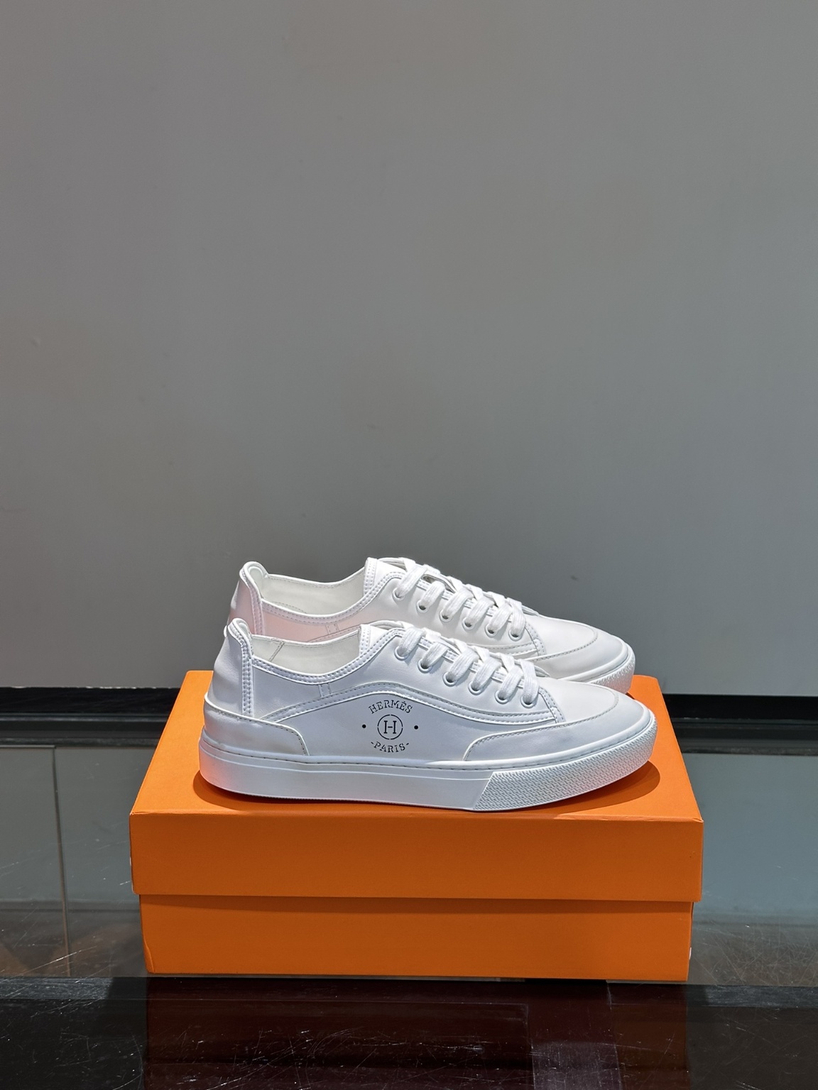 에르메스 로우탑 스니커즈 수입 송아지 가죽으로 부드럽고 광택이 나며 테두리를 모두 이태리 프릴 처리하여 360도 보풀이 없음 발이 편안하고 통기성이 좋음 안쪽 수입 송아지에는 소가죽 깔창 기본, 큰 고무창 클래식한 어디에나 잘 어울리며 발이 편안함
