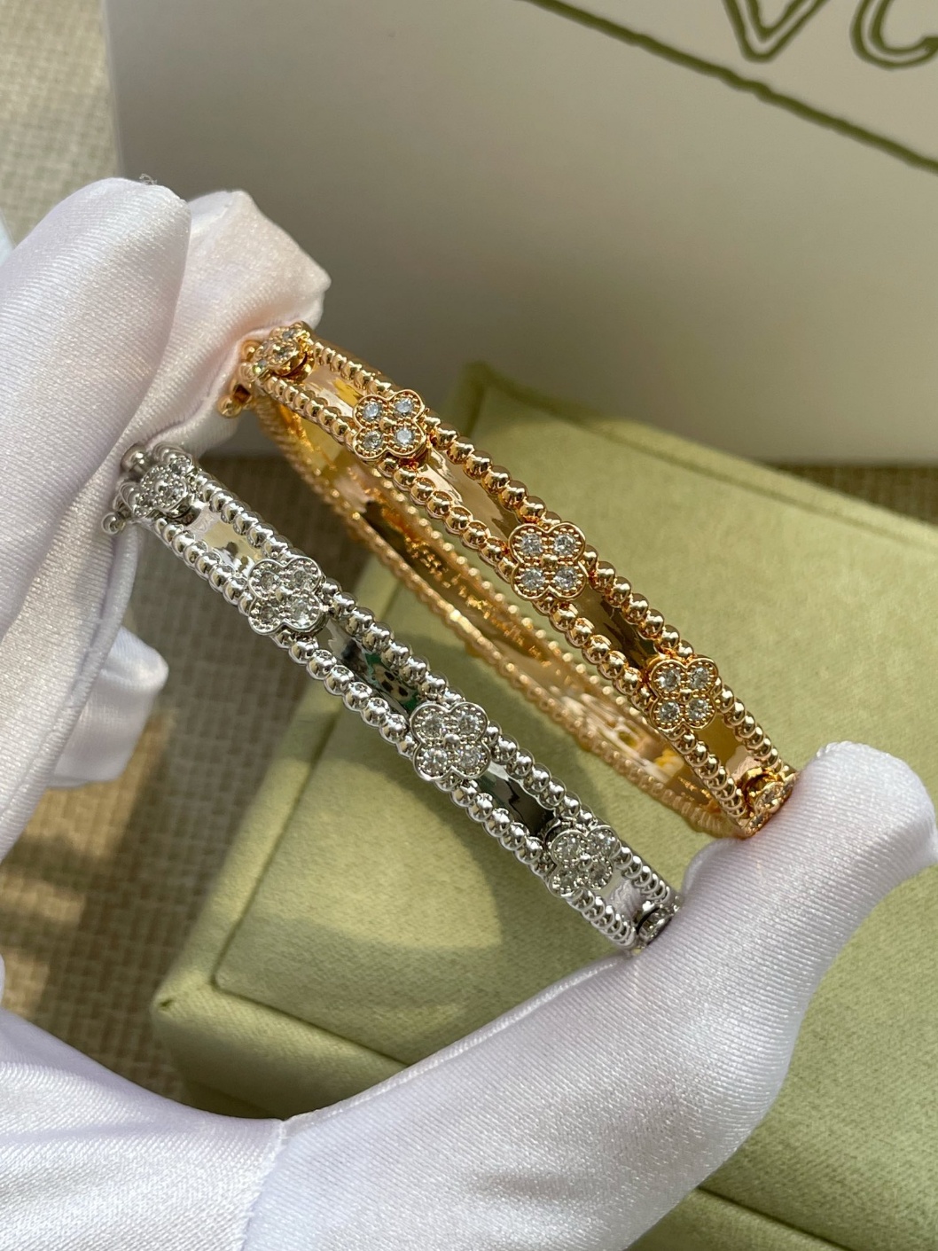 VC 좁은 만화경 팔찌 ZP에 따라 만들기, 세공하기, 너무너무 어려움 위아래 뚜껑 두 개, 가운데 통, 통 위에 있는 네 잎 클로버를 한 개씩 조립하는 것은 매우 힘이 들어요 하나씩 해나가면서 효과를 하나씩 느껴보시고 테두리 모양이 둥글고 도톰하며 사이즈에 따라 테두리 수가 다름 플라워 모양 입체감이 매우 좋으며 꽃의 안쪽 테두리를 포함한 테두리도 알알이 둥글고 벽 안쪽 테두리 디테일은 레터링과 ZP와 같음 고급스러운 주얼리 공예의 질감을 그대로 유일하게 ZP를 실제로 구매하여 개발 순은 도금 소재, 4A 리얼 큐빅 S, M 두 사이즈