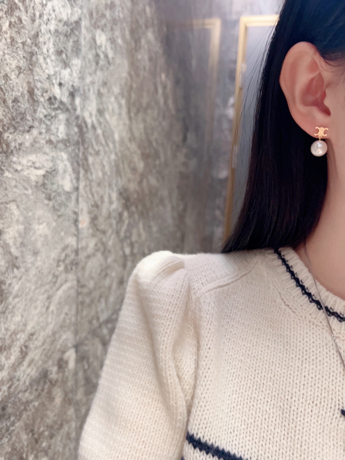 셀린느 개선문 진주 귀걸이 자유로운 영혼의 조화, 미니멀한 ins 스타일의 필 인플루언서들의 최애템 하드웨어 부품은 모두 CNC 조각기에서 조각한 Logo 시크 스위트 대범하고 사계절 착용 가능한 라인 유일하게 ZP를 실제 구매하여 개발 ZP 일치 신주 소재로 모조 진주를 특별 제작 사이즈 착용효과 참조