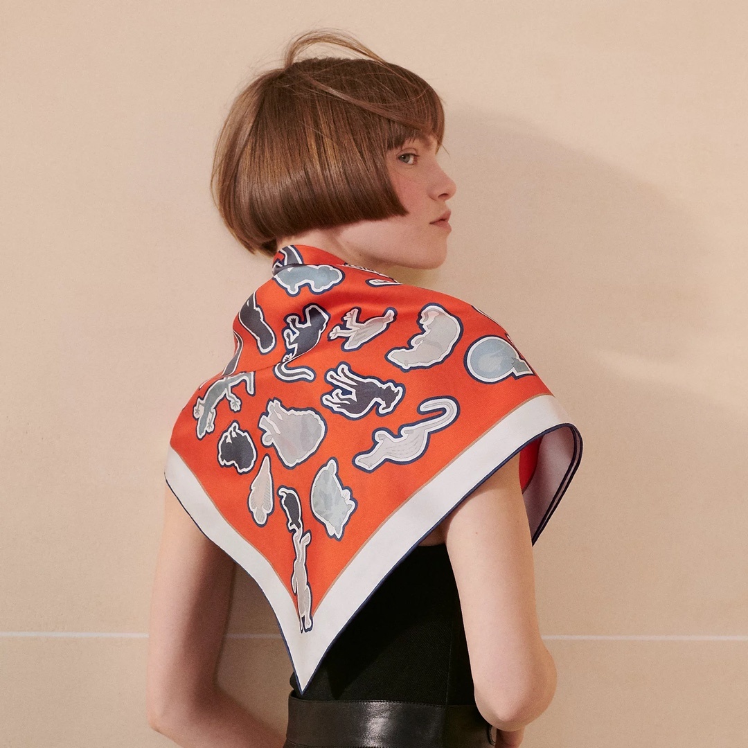 에르메스 카락테리스틱 실크 양면타올 이 독특하고 양면 착용이 가능한 이중 스카프 혁신적인 프린팅 기술을 통해 스카프의 양면이 매력적인 패턴으로 이중적인 아름다움을 선사함 소재 : 100% 실크 size : 90×90cm