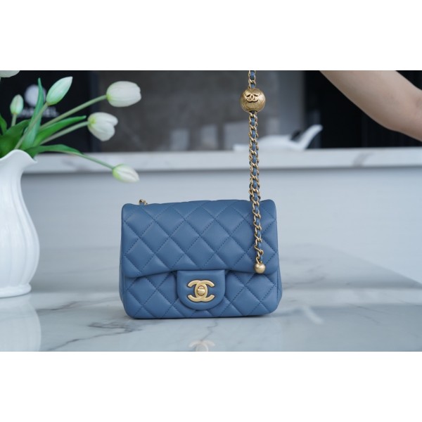 샤넬 23K 메탈볼 스퀘어 스모그 블루 모델번호 AS1786 마음대로 조절되는 메탈 볼로 다양한 키에 어울림 크로스 숄더 핸드백 힙색 다양한 연출 미모와 실용성을 겸비한 머스트 해브 아이템 사이즈:13×18×7cm
