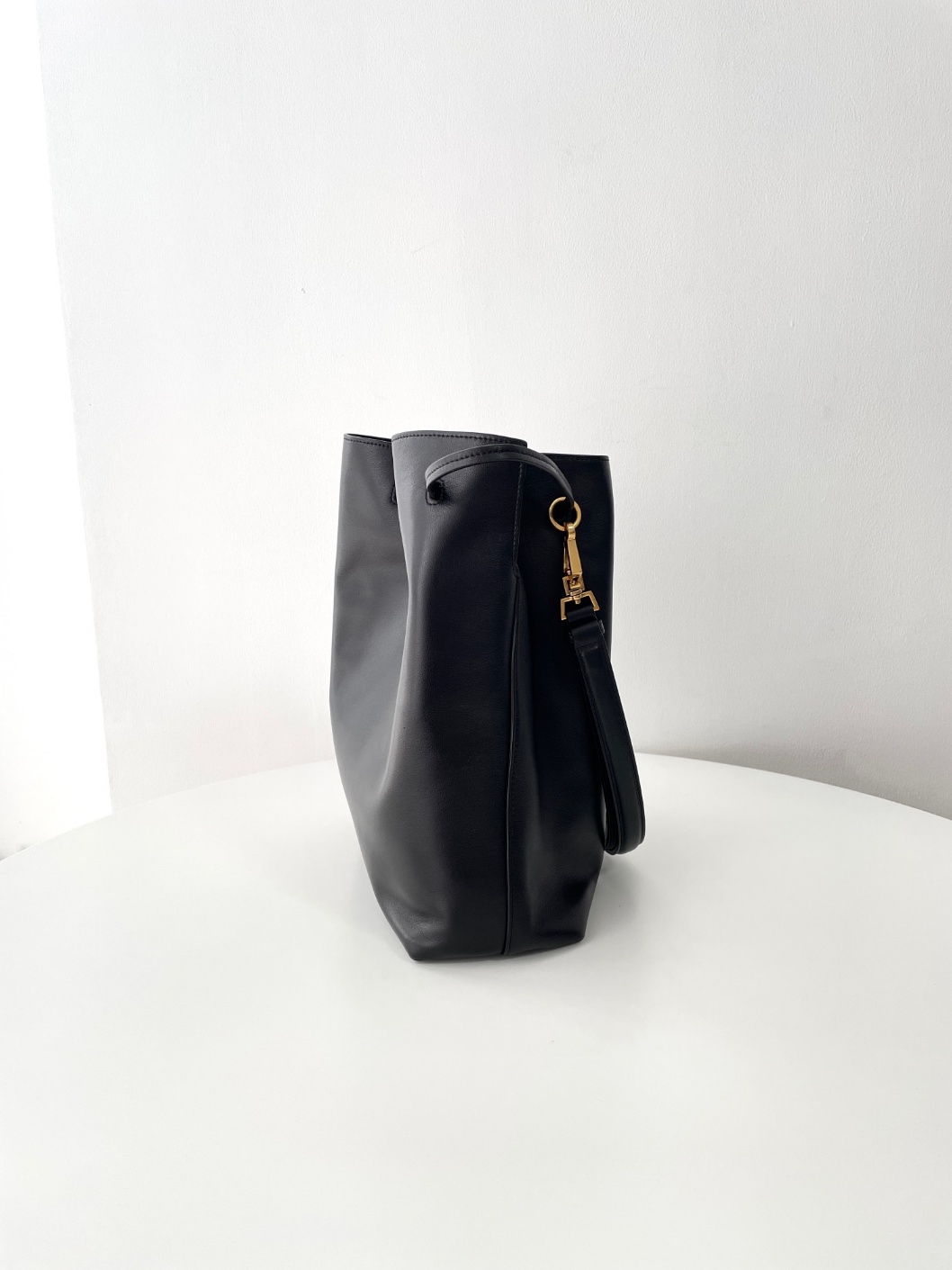 생로랑 Paris Vll 올 한 해 가장 느슨한 느낌의 패리스블 가방은 수입 양가죽 스트링과 아이코닉한 로고로 심플하면서도 엣지 있는 제품 대용량 디자인, 파워풀 룩, 비주얼과 실용성 모두 탈부착 가능한 파우치가 내장되어 있으며 어깨끈 조절이 가능하여 마음대로 전환할 수 있어 일상의 다양한 상황에 적합함 세련된 클로징 디자인으로 안전성은 물론 스타일리쉬함까지 모델번호: 697918 사이즈: 24x30x12cm