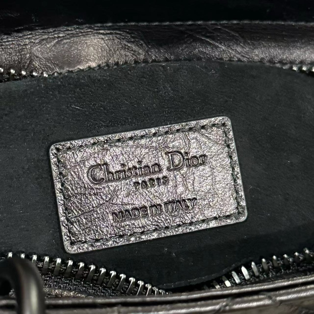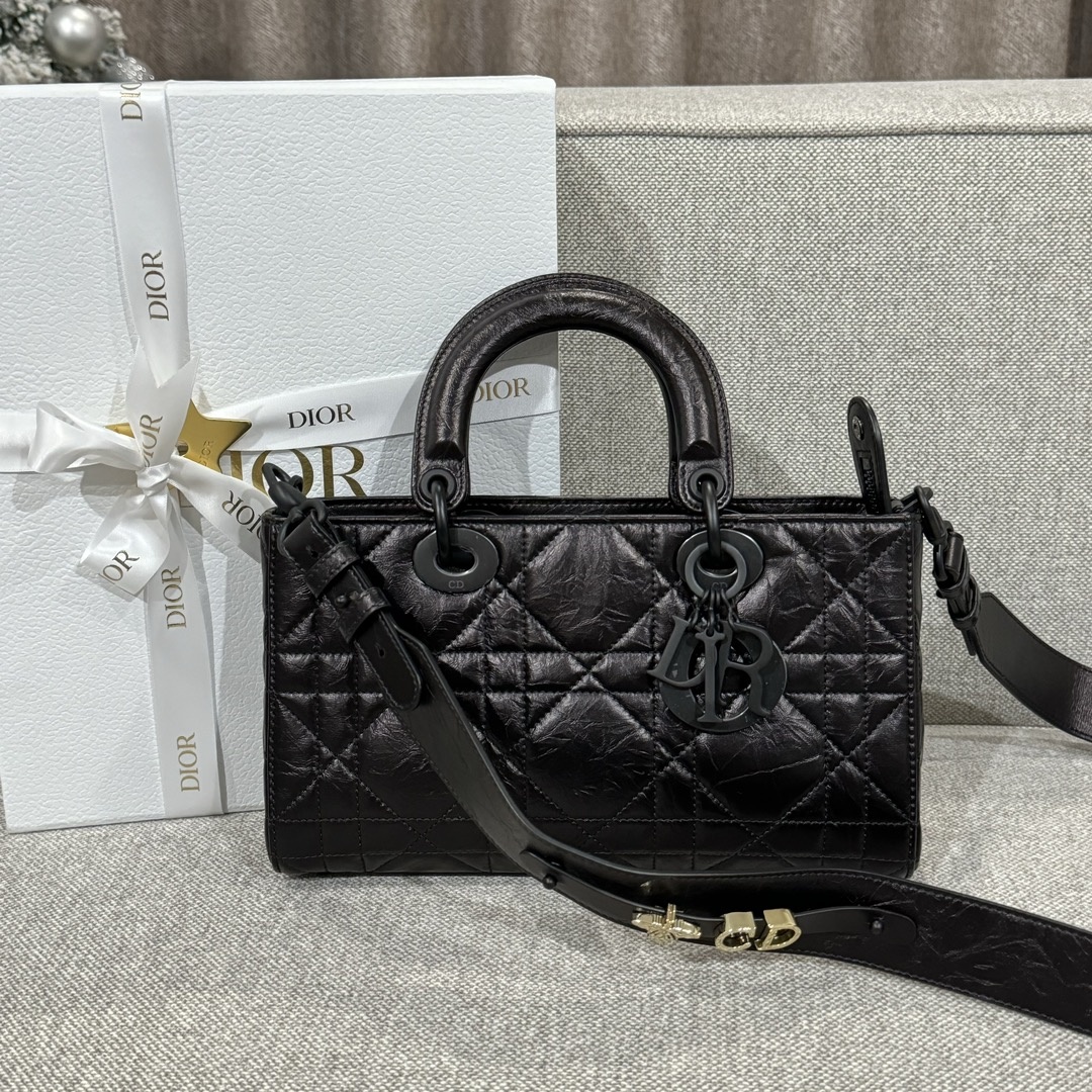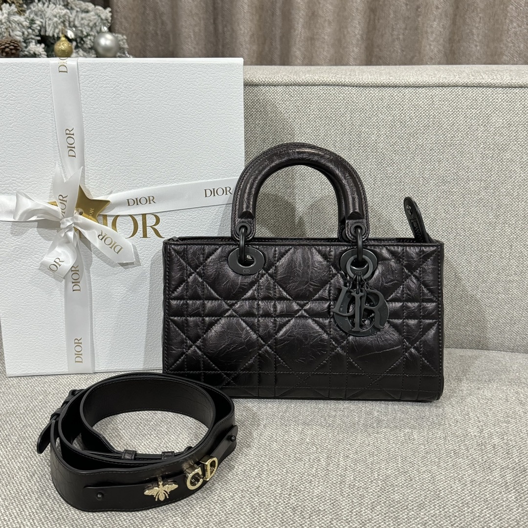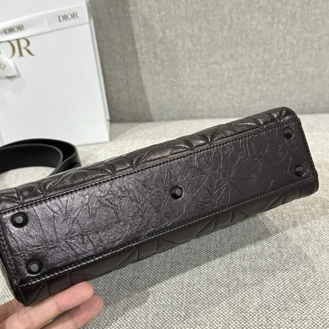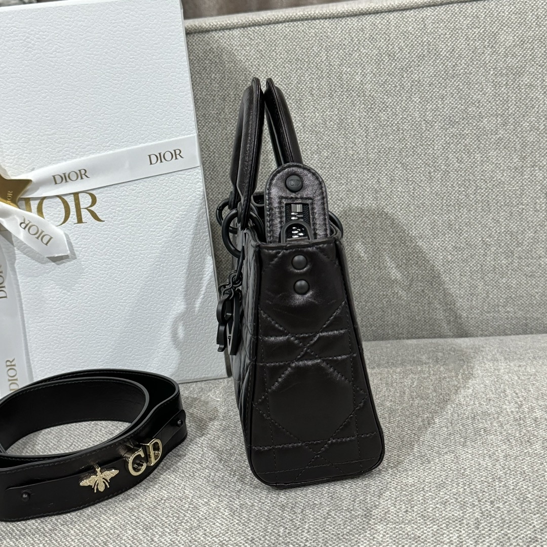 디올 LADY D SIRE 26 셔링 블랙 스몰 24년 블랙 러플 소가죽으로 정교하게 제작되었으며 캐주얼한 스타일을 재해석하여 도시적인 스타일을 완성 라탄 체크 박음질 라인에 톤온톤의 무광 메탈 D로 매치 10,R, 참 장식으로 모던함을 더해줌 스몰 사이즈 스타일로 유니크한 디자인이 돋보이며 스트랩은 클래식한 와펜 포인트 토트와 크로스로 연출하실 수 있음 사이즈 : 26×15×8cm