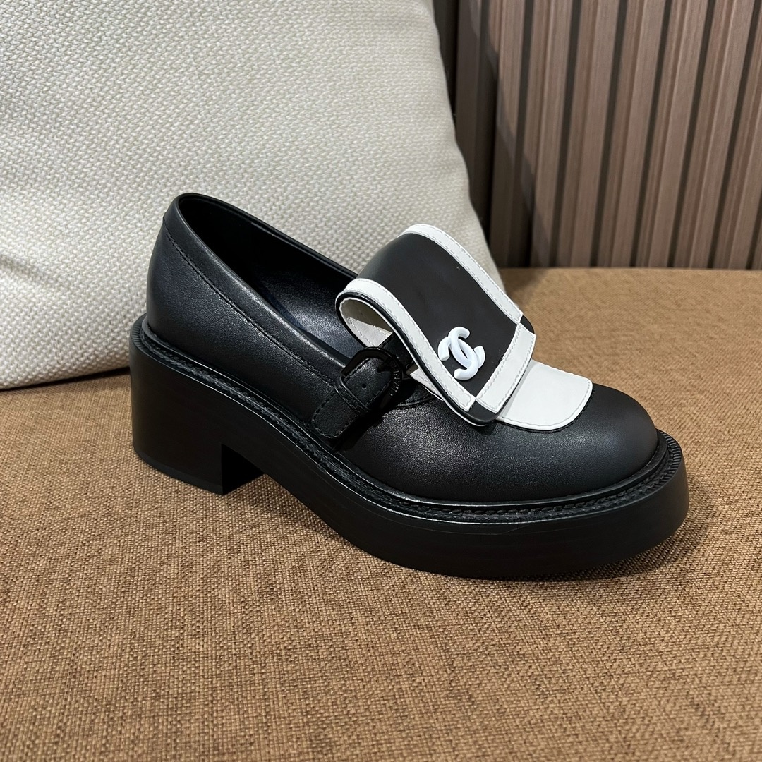 Chanel 24A 신상 팬더 패치워크 로퍼 학원물 디자인이 참 특색 있음 겉면은 수입 양가죽으로 질감이 부드러움 수입 양가죽 안감깔개, 이태리 수입 A급 가죽 통굽 이건 좀 무게감이 있어요 밑창: 6cm