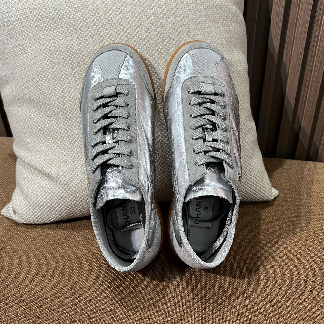 샤넬 24 신상 크랙 실버 스틸 슈즈 심플하지 않은 고급스러움으로 평범해 보이지만 너무 예쁜 슈즈 겉감 커스텀 크랙 송치 가죽으로 가죽 소재감이 뛰어남 맞춤 뽀글이 안감으로 편안한 통기성 오리지널 오픈 몰드 소 힘줄 바닥으로 편안하고 마모되지 않아 착용감이 좋음