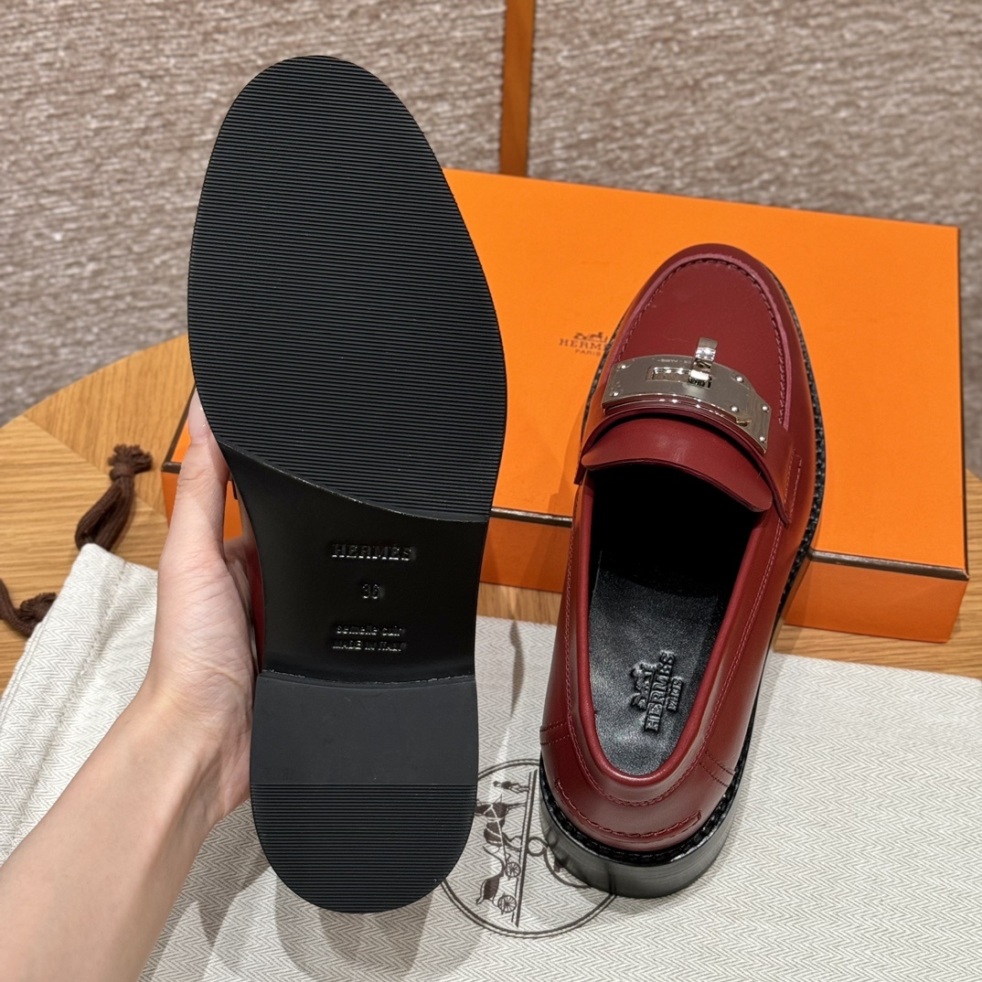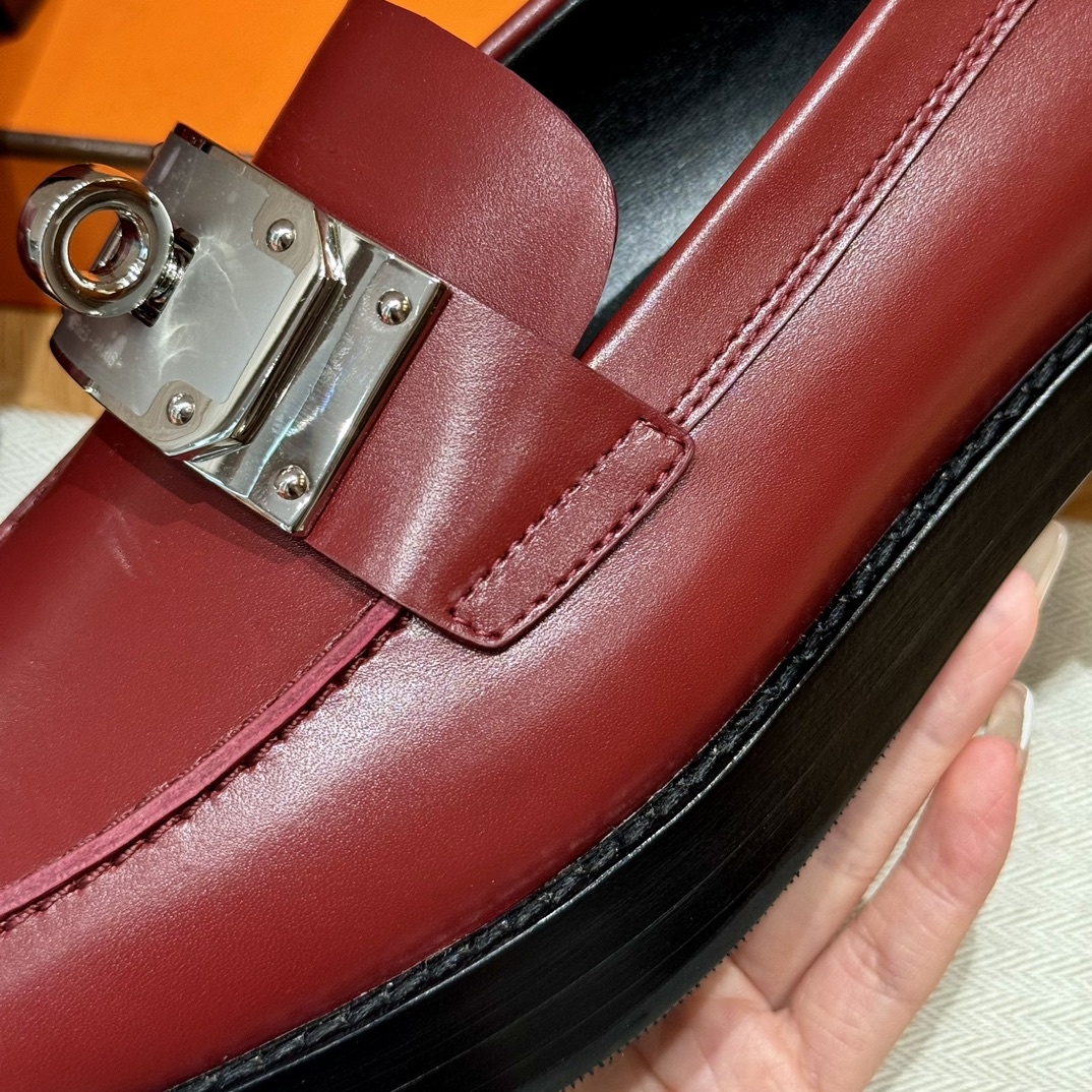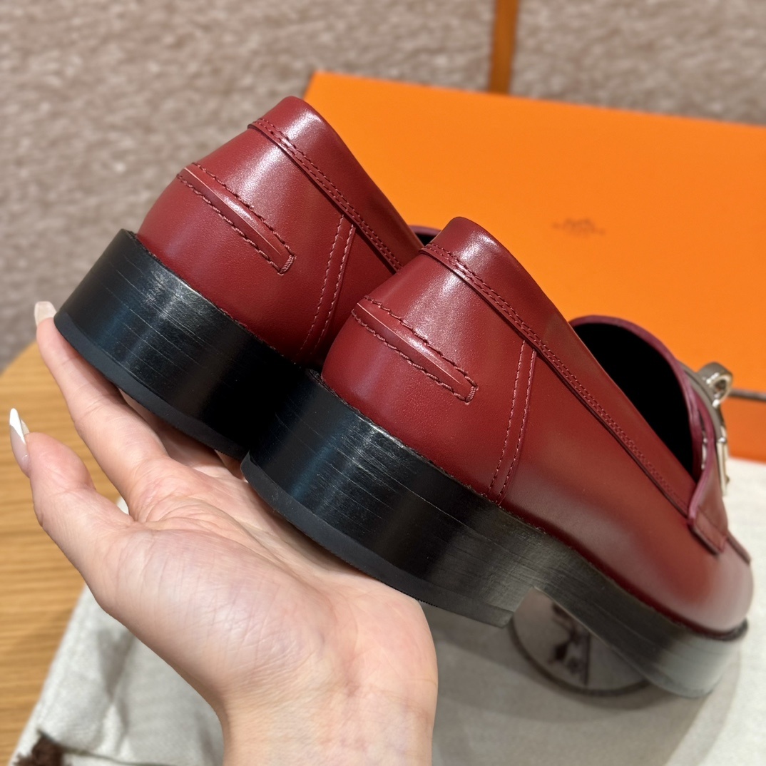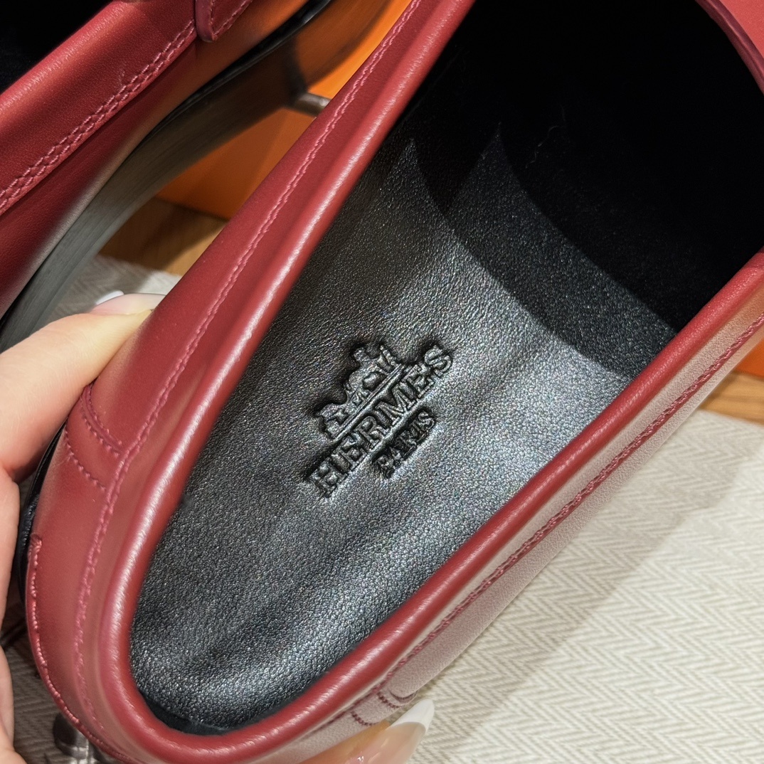 스타일: Hot loafer 색상: 에르메스레드/루즈H 겉감: 송아지 가죽/Calfskin 바닥재: 진피대창/Dermal outsole 하드웨어: 실버버클/실버 굽높이: 4cm 저희 매장 제품은 모두 수작업으로 제작하고 있음