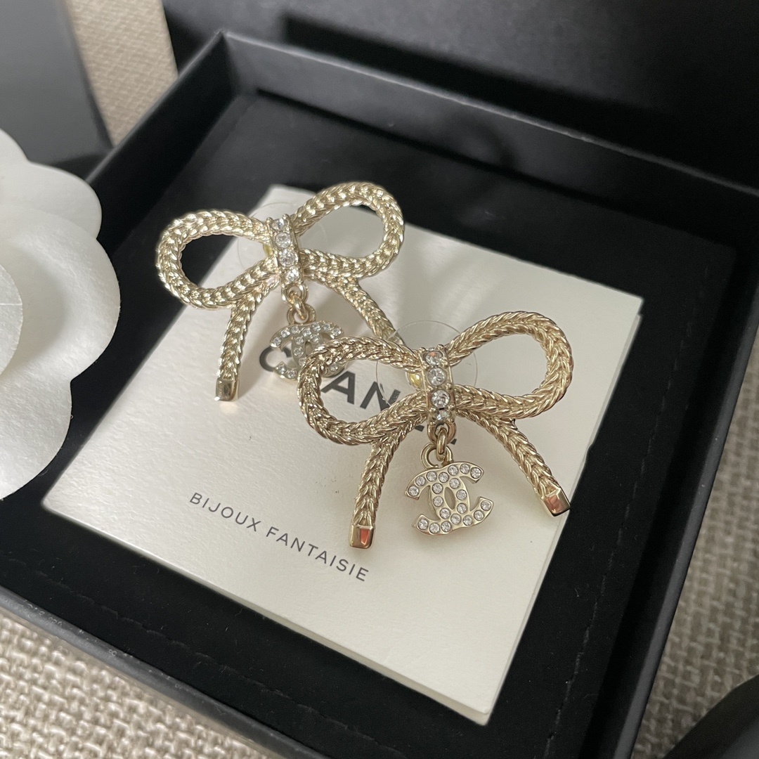 샤넬 리본 매듭 쁘띠 C 귀걸이 이번 시즌 핫한 리본 라인 필수 아이템 연한 골드 컬러로 고급스러움을 적절히 살린 매우 중공업적이며, 철제 끈 매듭 디테일을 섬세하게 입체적으로 작은 c양면에 큐빅이 달려있음 한쌍에 스와로브 큐빅 90개를 꼬박 사용했음 zp를 구매해야만 가능한 디테일 구분 시판 로우 버전과는 원가가 다름 유일하게 ZP를 실제 구매하여 개발 ZP 일치 신주 소재로 수입 스와로브스키 큐빅과 진주 사이즈 착용효과 참조
