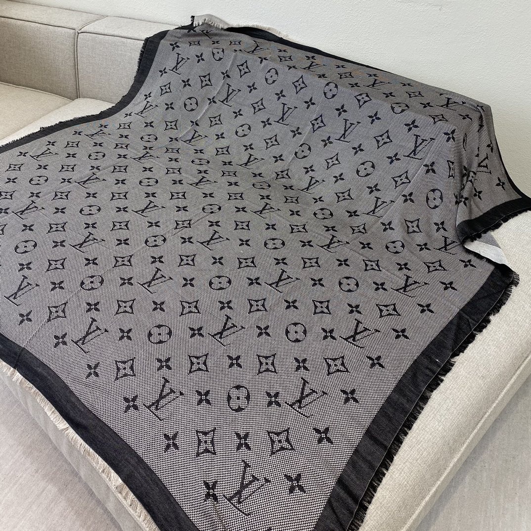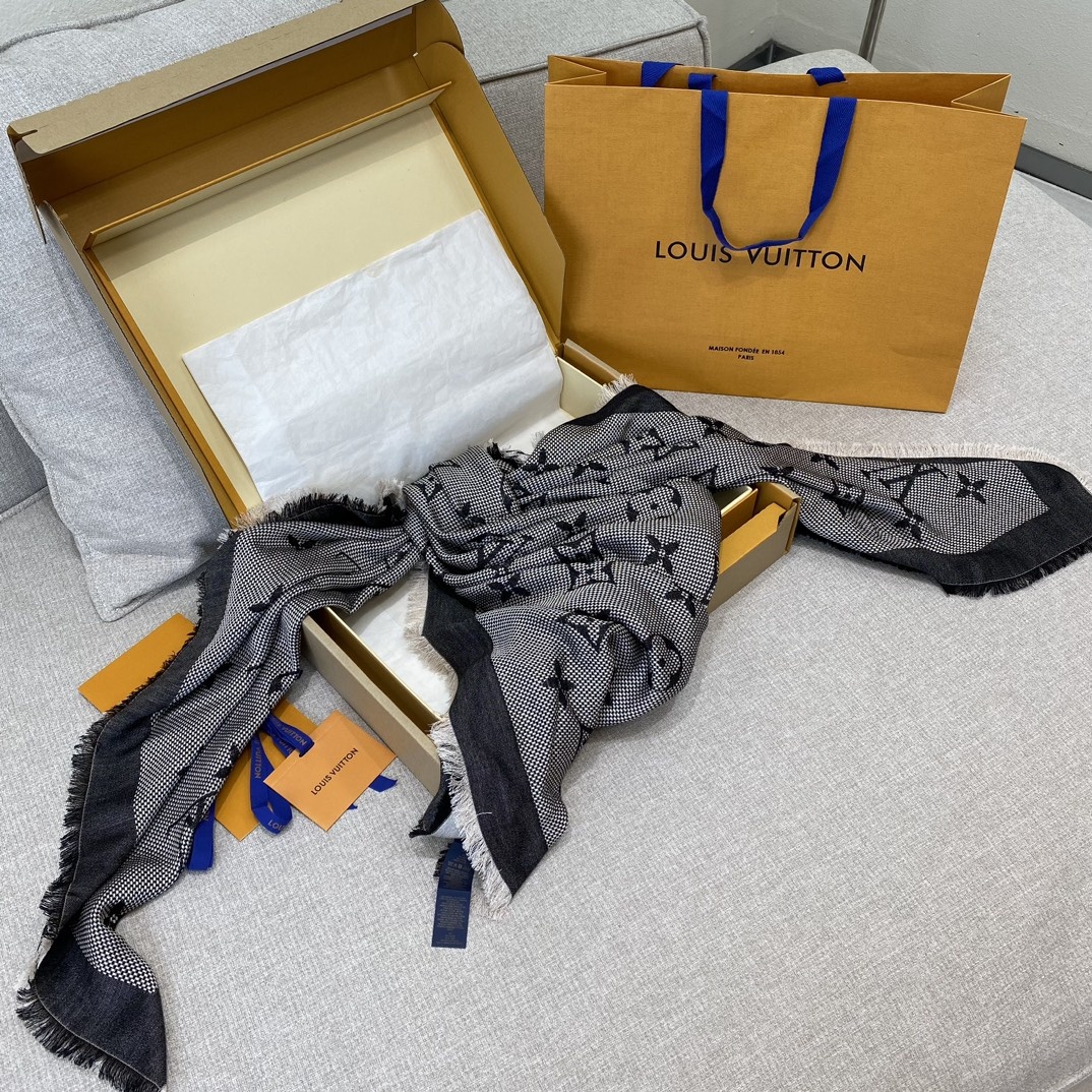루이비통 NEO NATTE MONOGRAM 스카프 Neo Natte Monogram 숄에 루피안 원단에 모노그램 패턴을 크게 그려주어 섬세한 결을 표현해 줌 울 실크 혼방으로 가볍고 따뜻하며 수술 트리밍과 루이비통 로고 짜임의 디테일 소재 : 울 70% 실크 30% size: 140×140cm