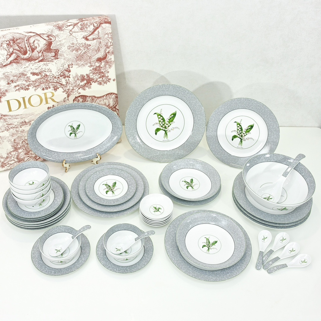 은방울꽃 32PCS 양식 6인식 디올 메종 크리에이티브 디렉터 코델리아 데 카스텔란 아름다운 새로운 은방울꽃 컬렉션으로 아늑한 가정환경 아름다운 디올라이프 무드를 선사함 은방울꽃: 행복과 행운의 아이콘 식판6 국판6 종지6 작은술6 간식접시6 맛접시6 디저트 접시2 큰국그릇1 큰국자1 어판1 큰과판1