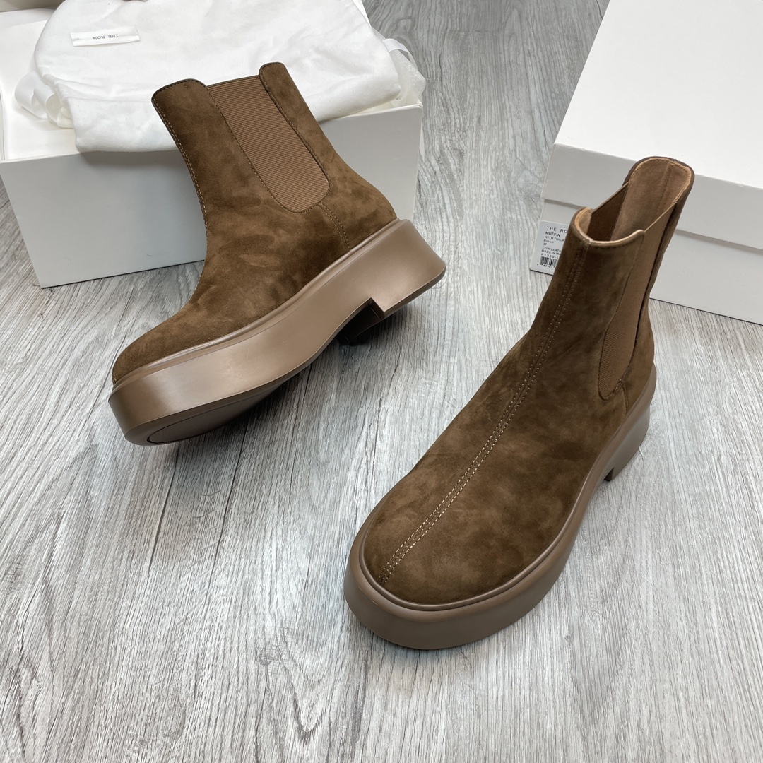 더로우 24 가을 겨울 신상 첼시 키높이 부츠 최고급 완제품, 약 5cm 통굽과 캐시미어가 조화를 이루어 보정 및 키높이 효과가 뛰어남 원단 선택 부드러운 실켓 캐시미어 질감 스크럽 가죽의 실켓 벨벳 감촉은 매우 부드럽고 섬세하며 시중에서 판매되는 일반적인 캐시미어의 텁텁한 촉감이 아님 실켓 캐시미어가 양가죽 안감에 밀착되어 통풍이 잘 됨 겉감 혼종 양가죽, 내피 혼종 양가죽 TPU 초경량 폼 팩터