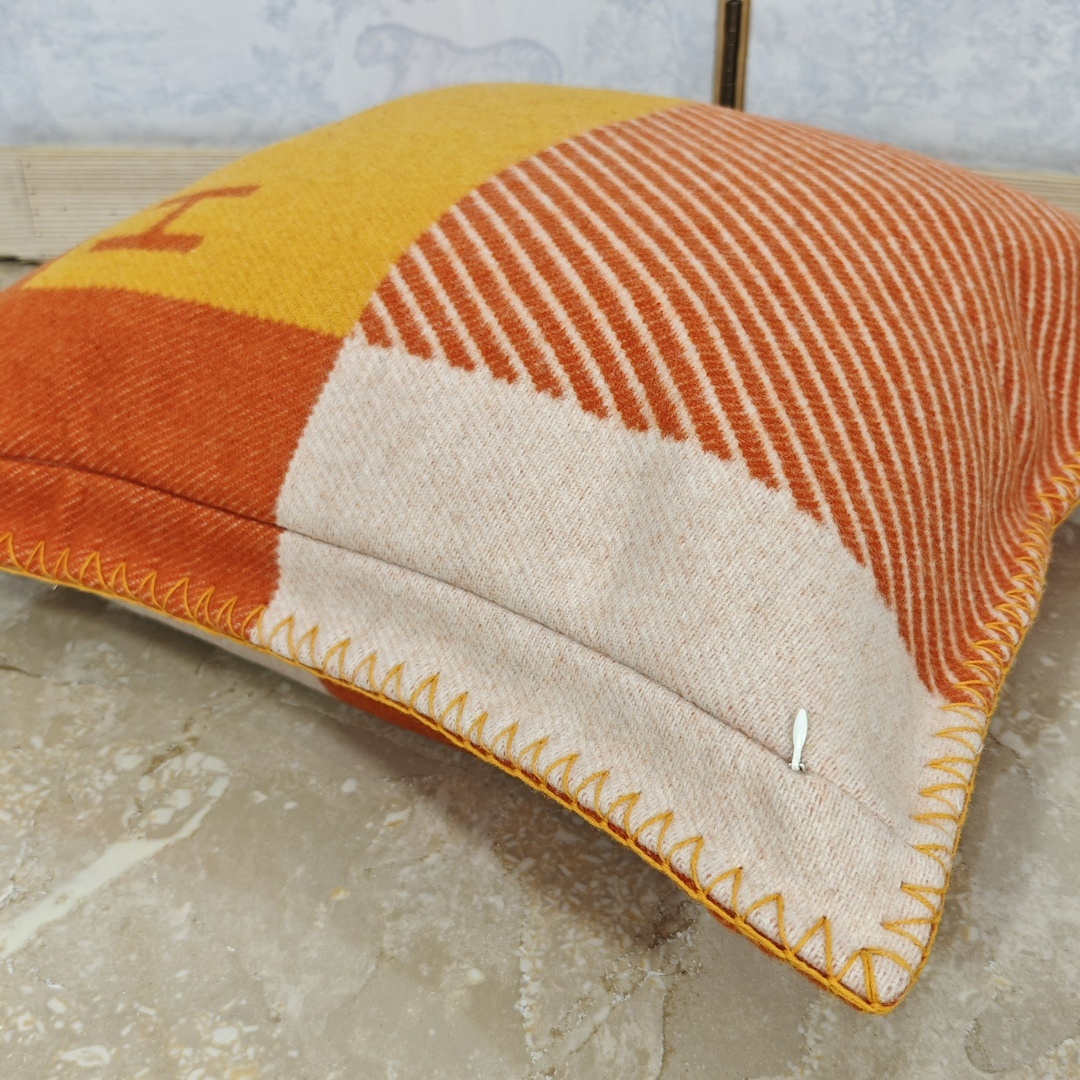 에르메스 2022년 신상 리비에라 쿠션 H 레터링 로고를 싫어하는 아기들에게 정말 잘 어울리는 제품 겉감: 울90%+캐시미어10% 1:1제작 사이즈: 50*50cm 양면 자가드 공예 앞뒷면 투톤