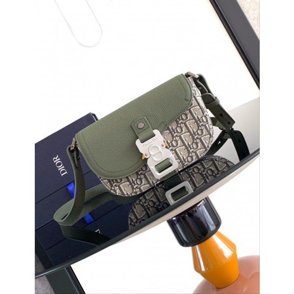 Dior 의 스타일리쉬한 디자인과 플랩을 매치하여 세련되고 우아한 분위기를 연출하는 안장 메신저백 카키 컬러의 Oblique 엠보 원단으로 정교하게 제작되었으며 톤온톤의 알갱이 가죽 플랩과 크리스찬 디올 로고 알루미늄 버클로 포인트 미니 스타일로 탈부착이 가능하고 조절 가능한 가죽 스트랩을 매치하여 토트와 숄더 또는 크로스 연출이 가능함 나일론 안감, 내부 포켓, 뒤 마그네틱 패치 탈부착 조절 가능한 가죽 숄더 스트랩 전면 메탈 코팅 신주 디올 로고 안쪽 디올 엠보 로고, 더스트백 내장 모델번호: 2ADCA435YKK 사이즈: 19.5 x 13 x 4.3cm