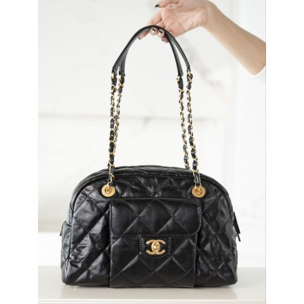 샤넬 24A 볼링백 라지 모델번호 AS4776 이태리 몬테벨로 오리지널 송치 가죽으로 부드럽고 육감 넘치는 촉감과 독특한 태엽결 부드러운 안개의 광택 빈티지하고 스타일리쉬한 룩으로 부담 없이 편하게 연출 가능 사이즈: 21*33*14.5cm