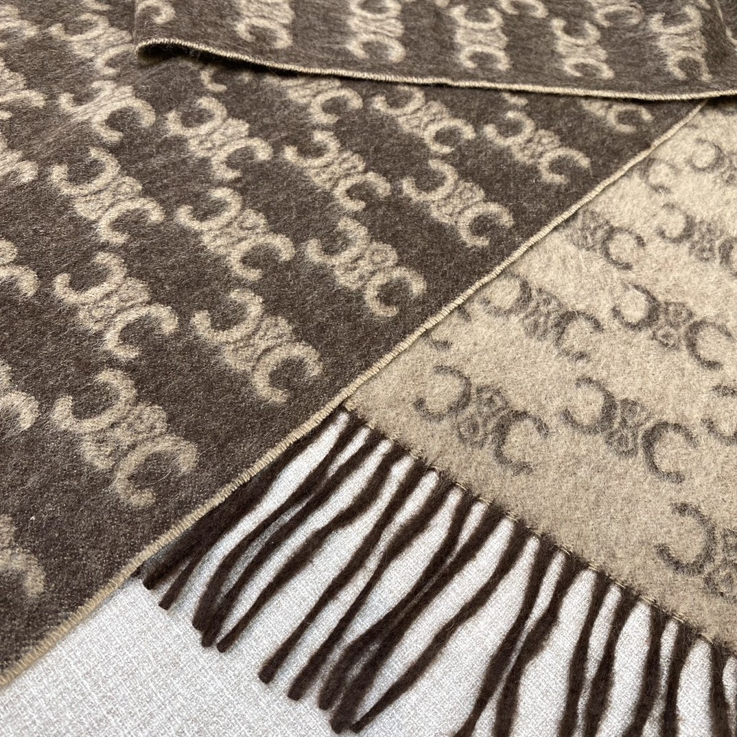 셀린느 시그니처 머플러 퓨어 캐시미어 1:1 하이힐 브라운 올해 신상 남녀공용 양면 자카드 머플러로 이전의 심플한 스타일에서 벗어나 복고풍 스타일을 채택하여 정말 패션 트렌드를 안정적이고, 비교적 만나기 어려움 매우 클래식하고 대범한 디자인 size 186x35cm