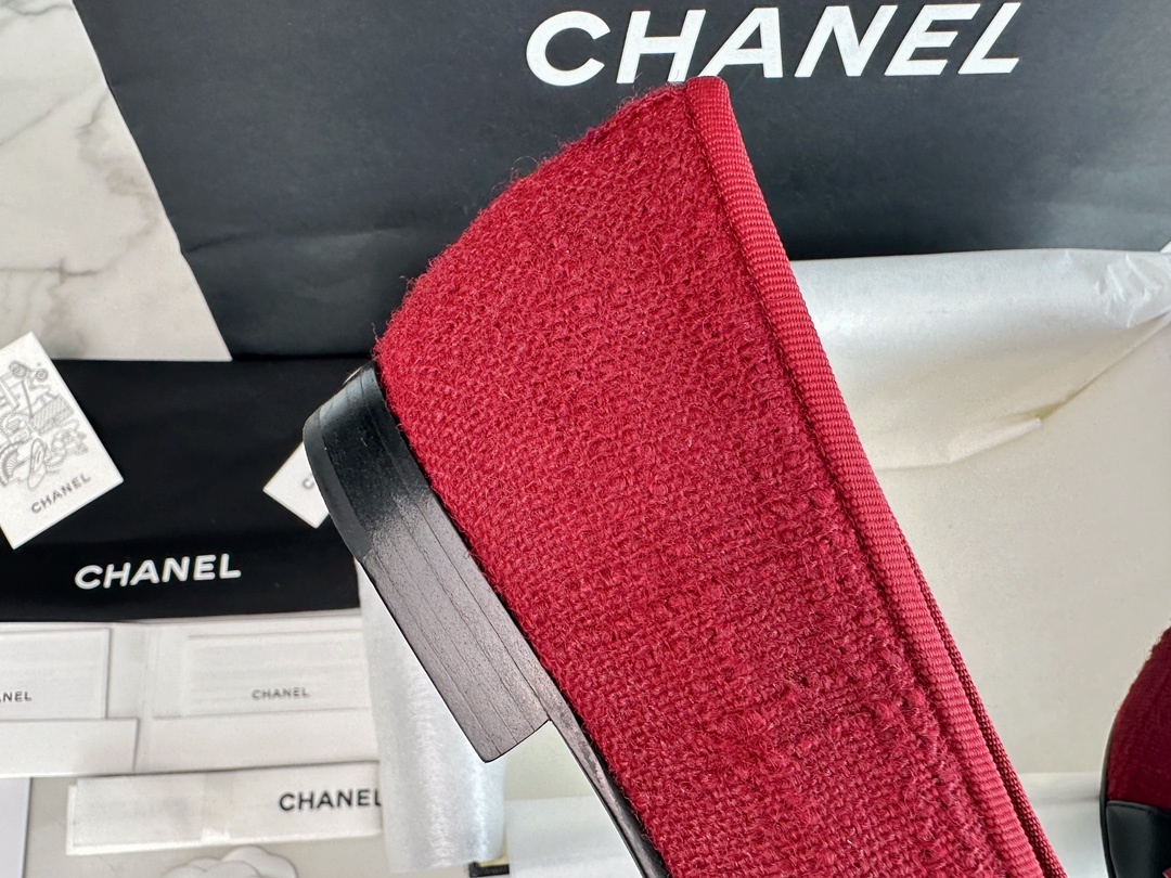 샤넬 24K 와인라인 짜임 발레슈즈 버건디 면과 린넨의 다양한 굵기 라인 짜임 원단 블랙 실크 양가죽+물염 양가죽 안감 이태리 프린트의 리얼 가죽으로 콤비네이션 느슨한 편안함과 화사함이 어우러져 매우 심플하고 편안함