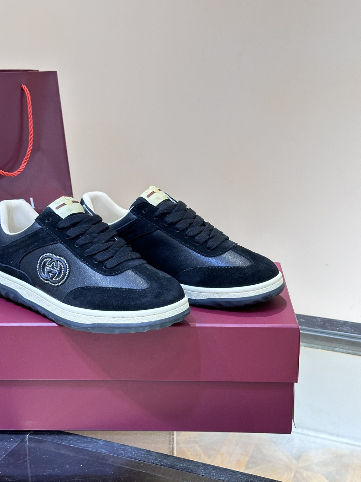 Gucci 남성 캐주얼 스니커즈 최고의 퀄리티 아이템으로 완벽하고 정교하며 컴팩트한 더블 G 로고가 이 컬렉션의 미적 컨셉을 해석해 줌 블랙 컬러의 가죽을 사용하여 빈티지한 영감을 스니커즈 디자인에 매치하여 브랜드 로고를 새롭게 연출 사이드 버클 더블 G 핫피스 디자인 오리지널 오픈형 투톤 TPU 베이스
