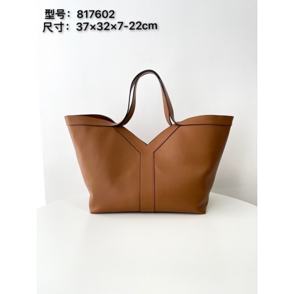 생로랑 Y Tote는 브랜드 창립자의 이니셜을 모티브로 하여 가볍고 낙천적인 라이프스타일을 전달하여 새롭게 출시 수입 미세 송아지 가죽으로 제작되었으며 같은 색상의 스웨이드 가죽의 전체 라이닝으로 디자인 클래식한 카바스 핸드백의 Y 레터링을 확대 가죽 스트랩과 커팅 틈새를 이용해 레터링 실루엣을 완성 힘들이지 않는 패션 감각 모델번호: 817602 사이즈: 37×32x22/7cm