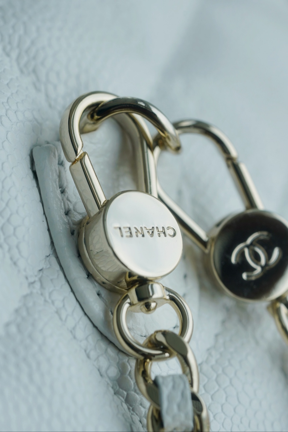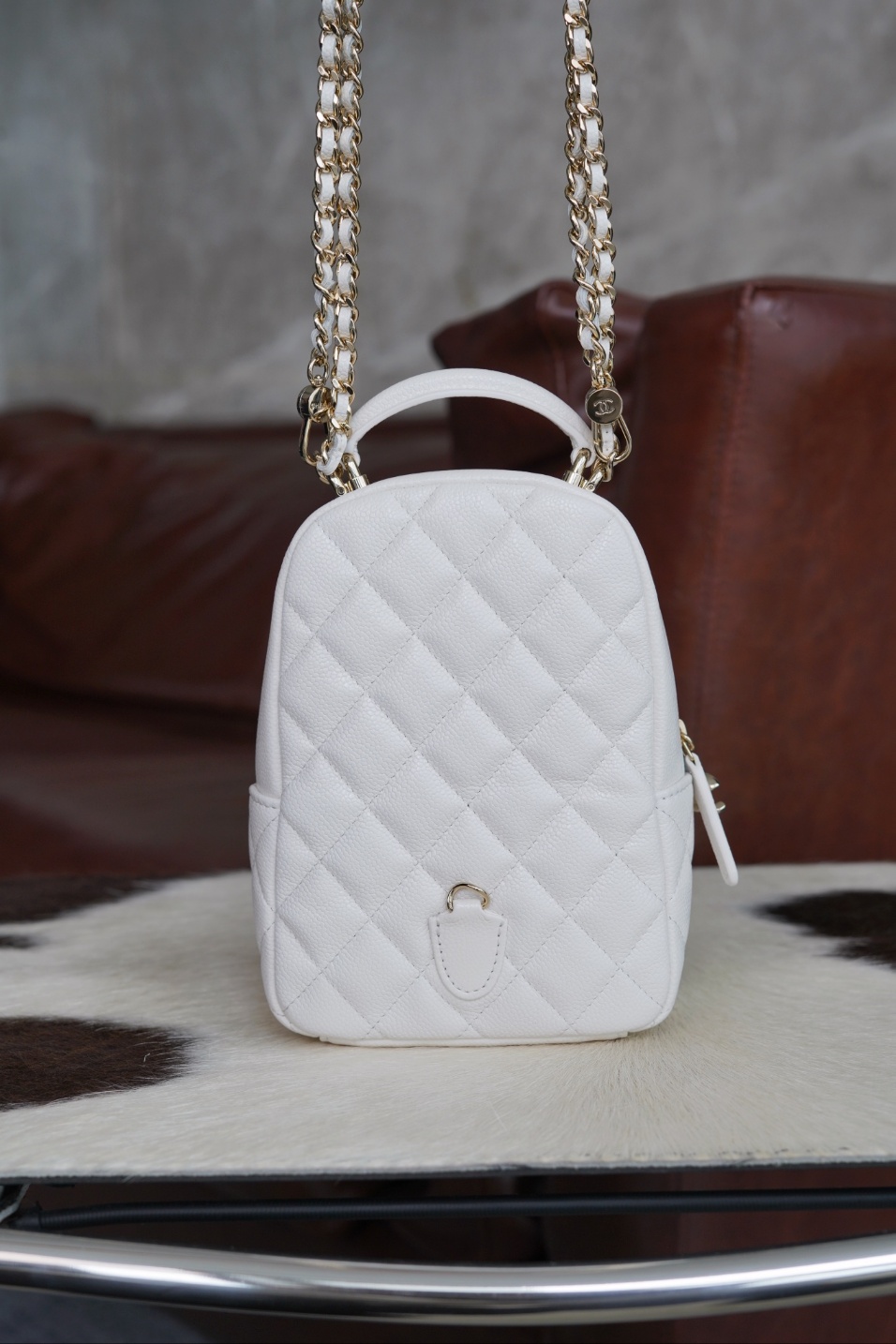 Chanel 24C mini 백팩 화이트 정품 가죽 모델번호 AP3753 프랑스 Haas 순정 알갱이 엠보싱 송아지 가죽 내구성 있으면서도 촉감이 부드럽고 가죽의 투톤감이 뛰어남 최고급 순도 골드 메탈릭 골드 컬러의 독점 사이즈: 13×7×18cm