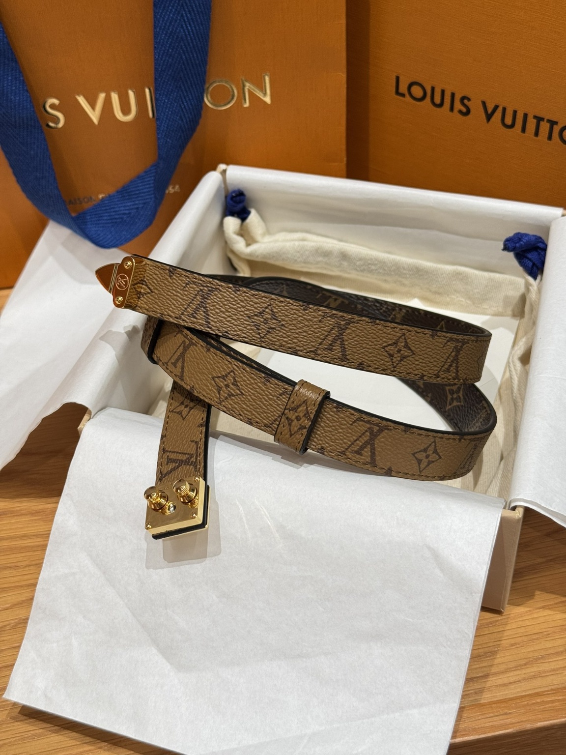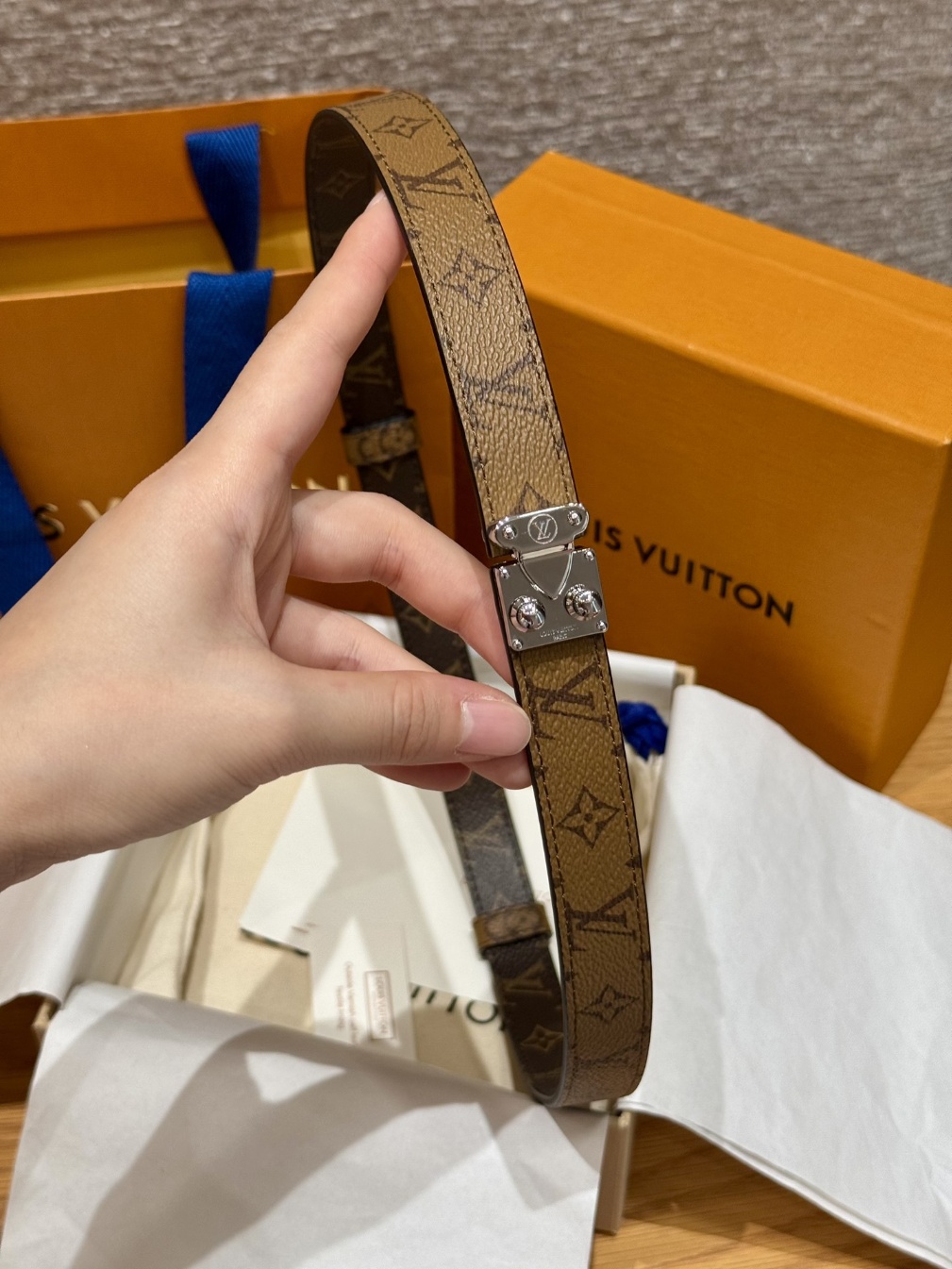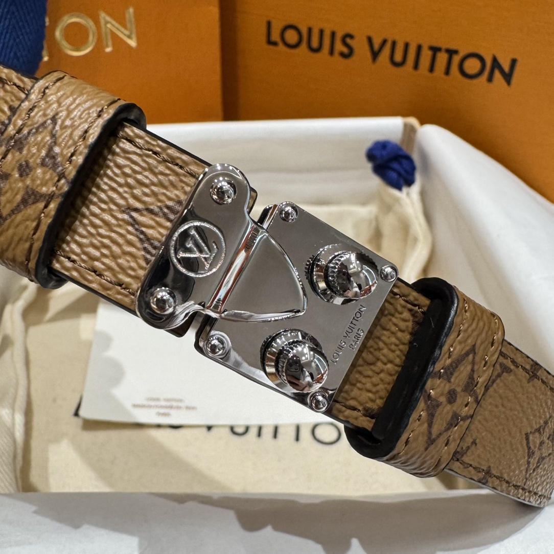 LV 신상품 여성 벨트 Serrures 20mm 가죽 밴드는 너무 정교함 소가죽을 소재로 한 화려한 S-Lock 버클로 브랜드 정통 하드케이스 당나귀 집 로고 엠보와 모노그램 캔버스 안감에 클래식한 터치감을 더하였으며 뒷부분은 구조 조절이 가능하여 편안하게 밀착됨