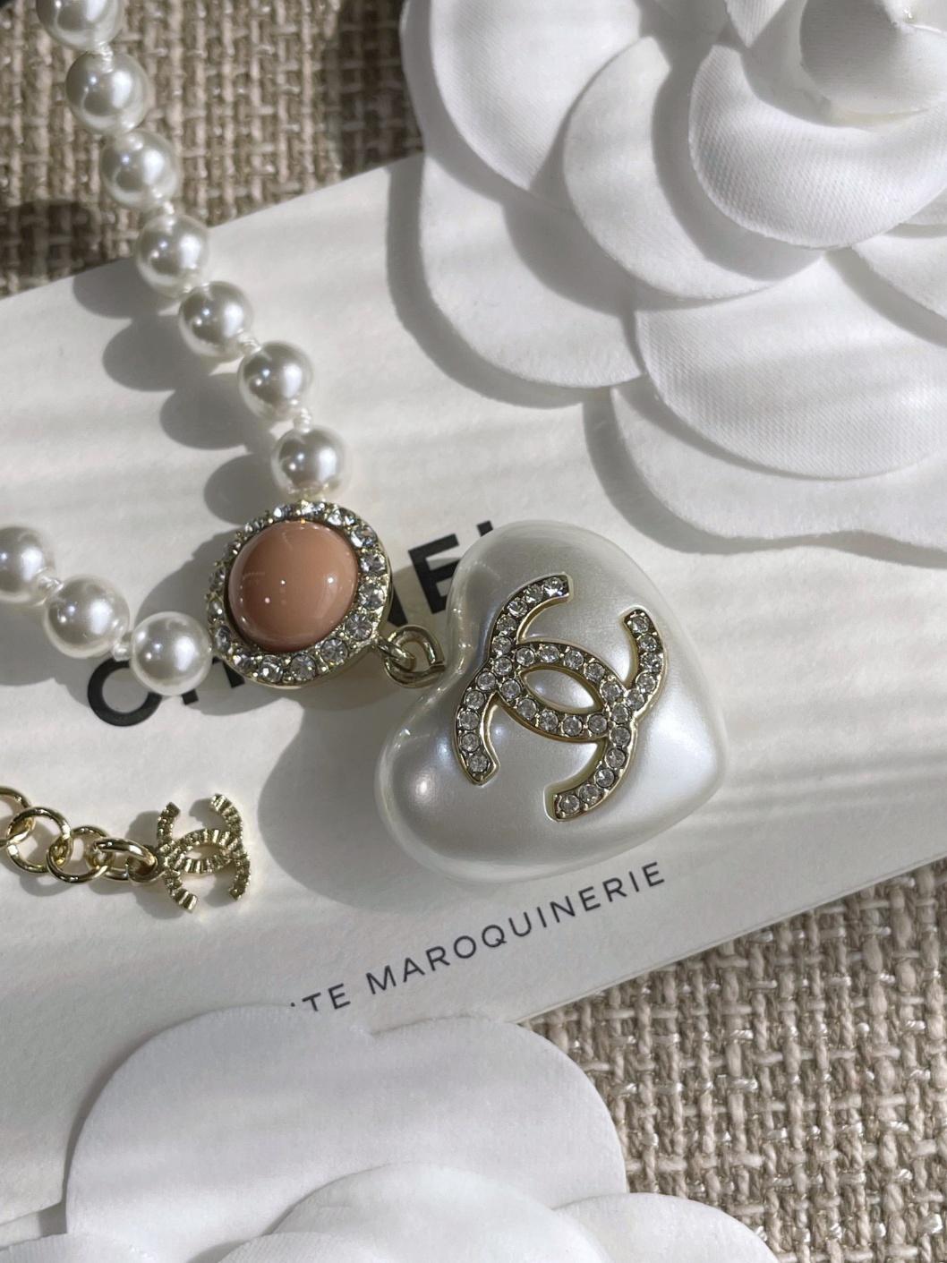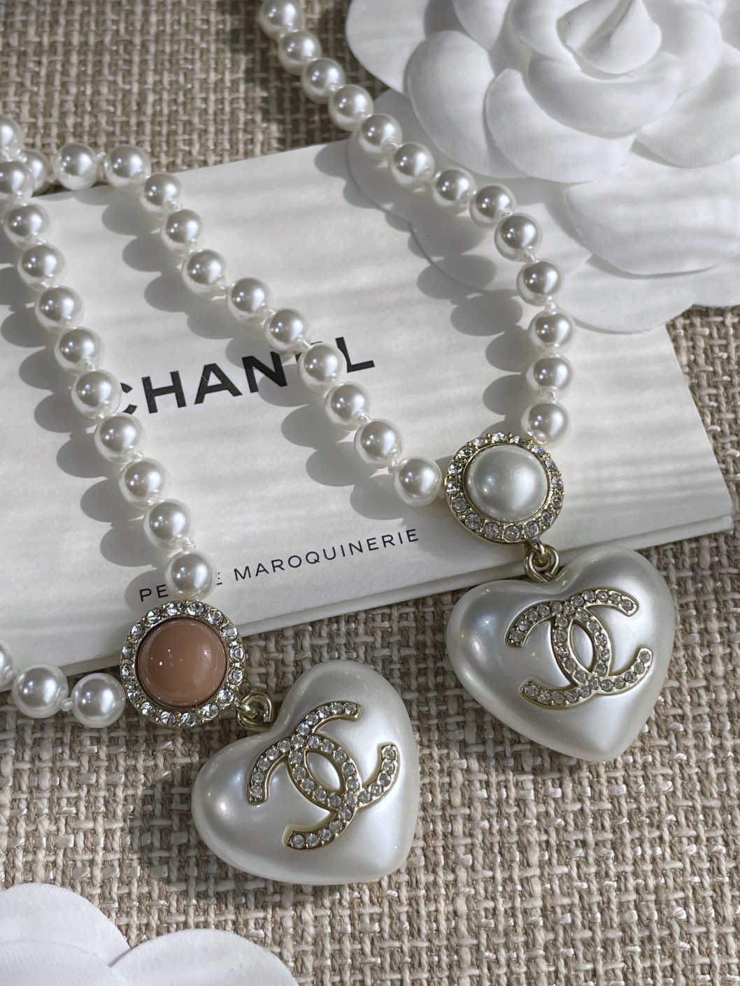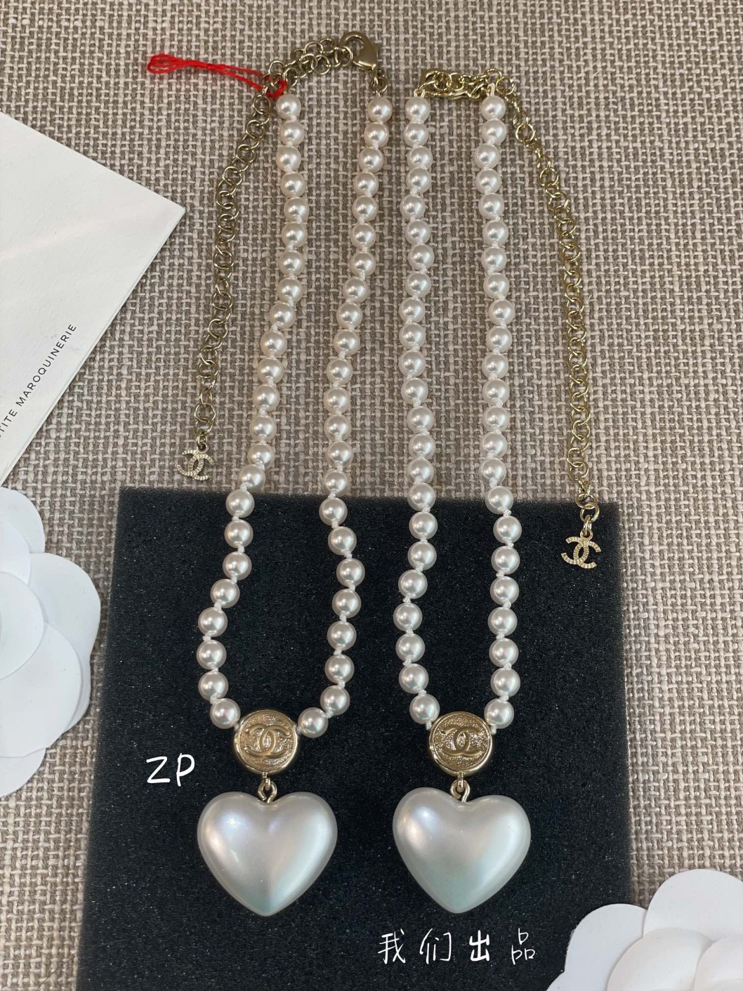 샤넬 하트 진주 목걸이 핑크펄+화이트하트, 화이트펄+화이트하트 알알이 스와로브 진주의 빛깔과 광택이 흠잡을 데 없이 느껴짐 올해의 핫한 시리즈 유일하게 리얼 모델 ZP 구매 개발 ZP 일치 신주 소재, 수입 스와로브스키 크리스털 큐빅 특별 금형 제작 하트 진주, 에나멜 파우더 목걸이 체인 길이 약 35CM, 연장 체인 약 15CM 하트 폭 약 2.8CM, 높이 약 2.4CM