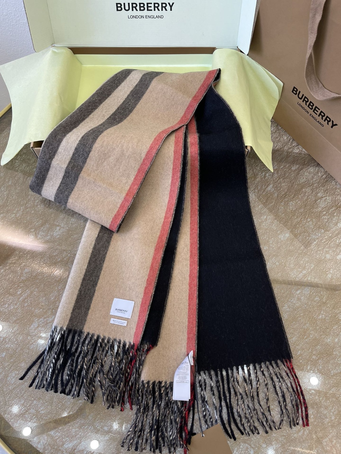 버버리 헤비 프리미엄 캐시미어 머플러 심플한 세로 스트라이프 배색 클래식한 스트라이프에 블랙, 특별한 디자인 없이 심플한 로고 고급스러움, 캐시미어계의 신화를 창조 소재: 캐시미어 100% size: 200x36cm