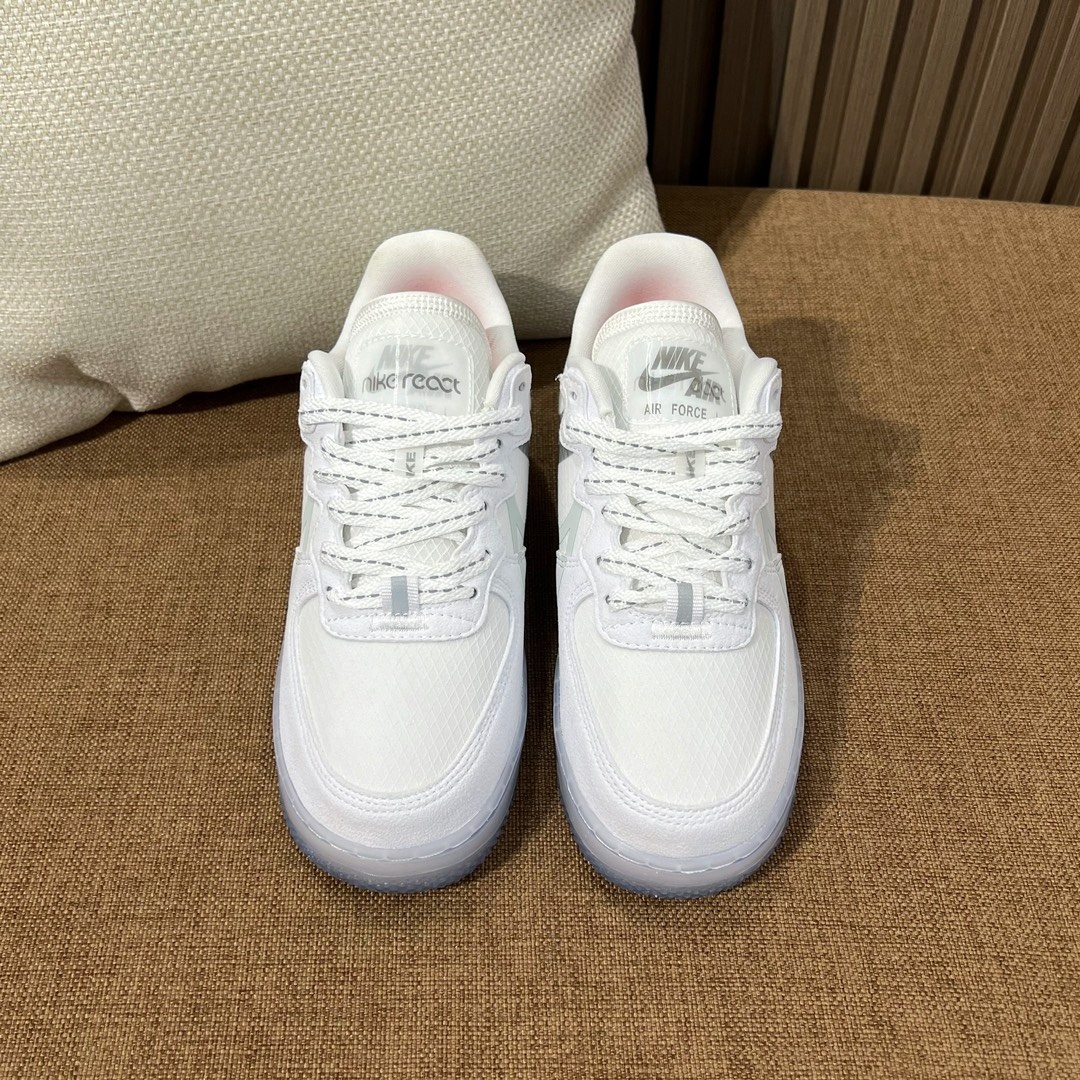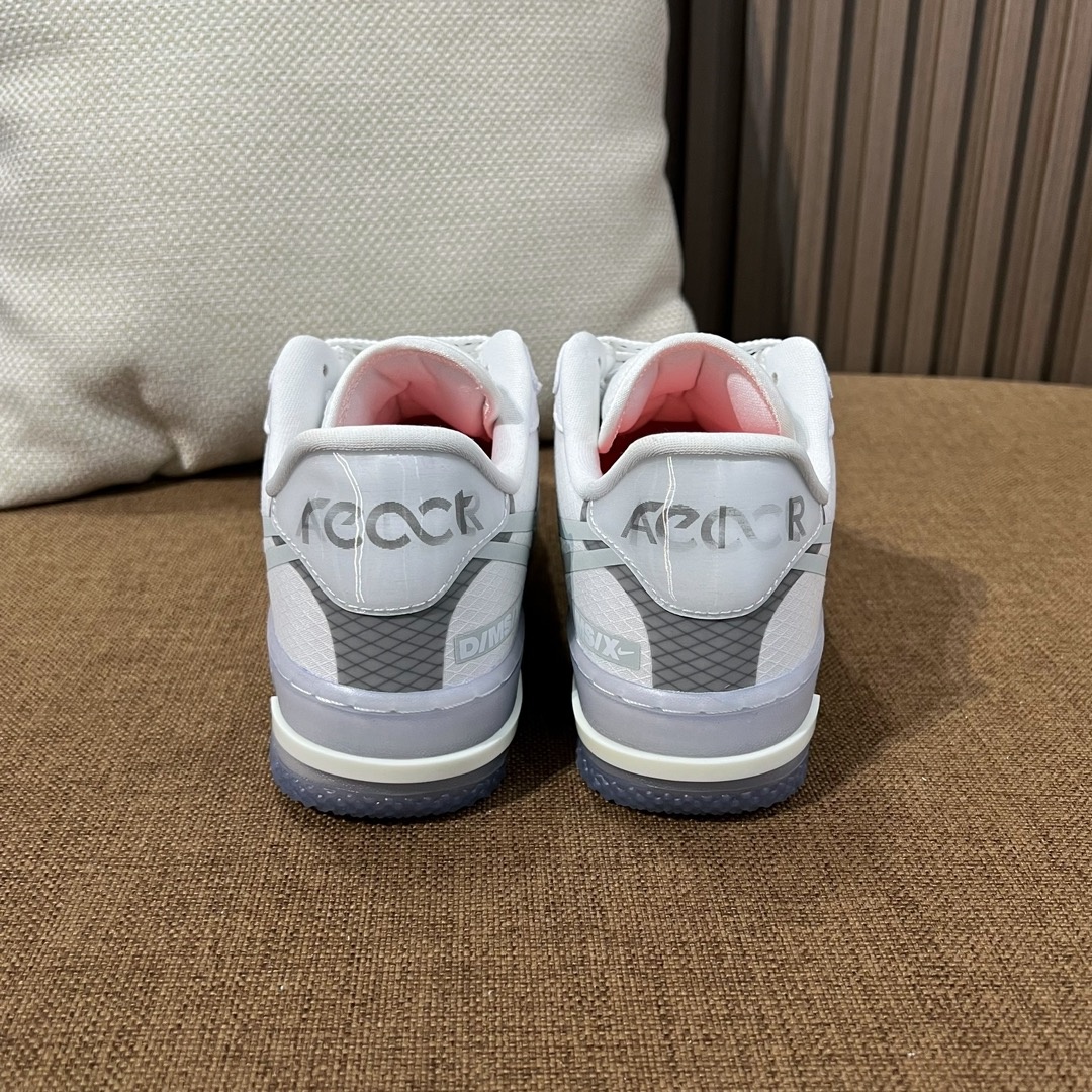 나이키 에어 포스 1 Low react qs light bone 이 신발은 나이키 리액트 테크놀로지를 접목하여 더욱 뛰어난 제품 성능을 구현함과 동시에 부드러운 반등의 부드러운 발놀림을 선사함 바디에 라인을 더하여 레전드 슈즈를 더욱 돋보이게 함